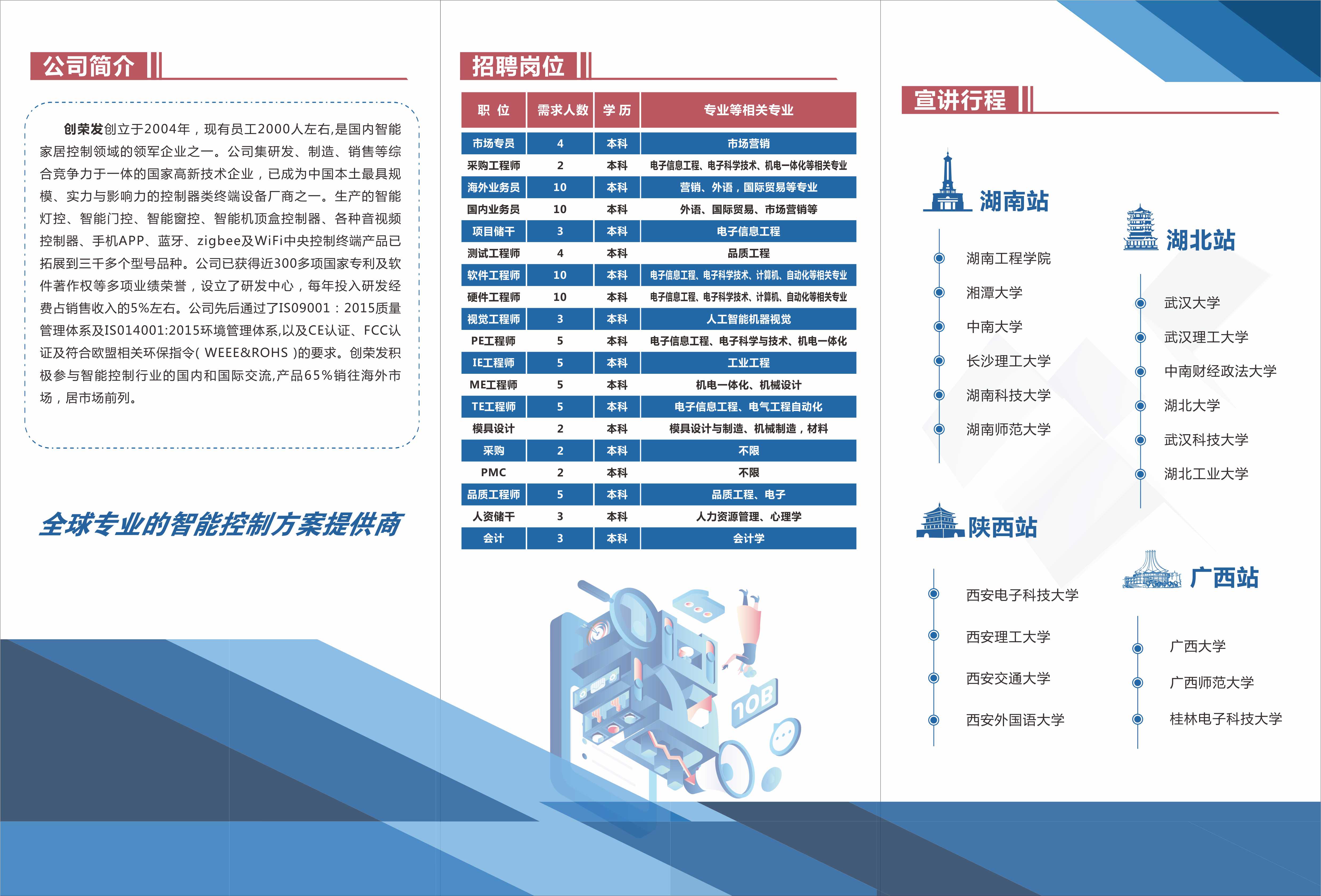 创赢未来职等你来!【太阳成集团122ccvip宣讲会】宣讲地点:太阳成集团122ccvip东校园大学生活动中心三楼培训室(319)宣讲时间:11月10日下午15:00-17:00岗位研发类:软件工程师、硬件工程师技术类:专利工程师、视觉工程师、PE工程师、模具设计、结构工程师、品质工程师、生产储干运营服务类:采购工程师、会计、市场专员、外贸业务、人资储干投递方式宣讲会现场可扫码投递电子简历或纸质简历,有HR现场面试,网申渠道:adm09@cn-cdrc.com。深圳创荣发欢迎你的加入!@全体成员