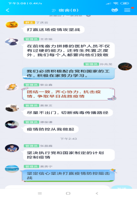 研究生183班学生:疫情还未褪去,这场没有硝烟的疫情阻击战,是一次大考,是国家治理能力与治理体系现代化的大考,是党组织与人民群众的大考!我们定将团结一致,众志成城,狭路相逢勇者胜,迎难而上,我们定将胜利!