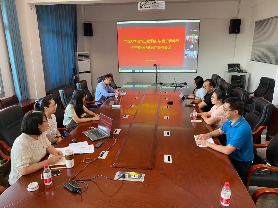 10月26日下午,太阳成集团122ccvip与南宁供电局生产专业创新合作交流会在学院315会议室举行,会议主题是“科研共建助创先”。学院副院长黎静华主持会议,十多名教师通过线上或线下方式参会。