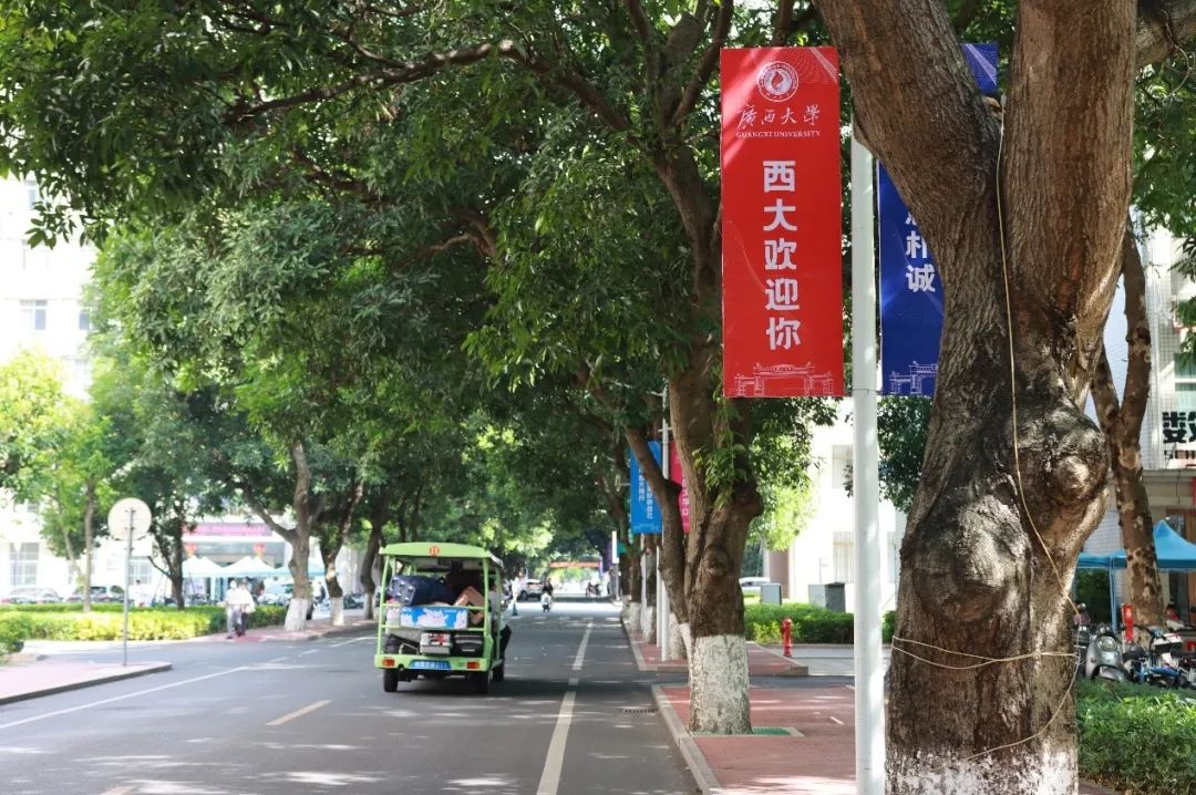 金秋送爽,桂花飘香。八桂之南,边海之交。共襄盛会,青春飞扬。蟾宫折挂,金榜题名。绿城之中,邕江之畔。喜迎学子,共谱新篇。