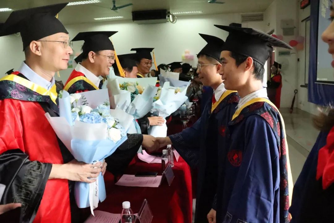 6月24日上午,太阳成集团122ccvip2022届毕业典礼暨学位授予仪式在第六教学楼拉开序幕,院党委书记梁志坚、院长双丰、副院长胡立坤、副院长刘辉、副院长黎静华、副院长于婷、研究生导师代表、毕业班班主任和全体辅导员出席典礼。院党委副书记雷圆媛主持毕业典礼。