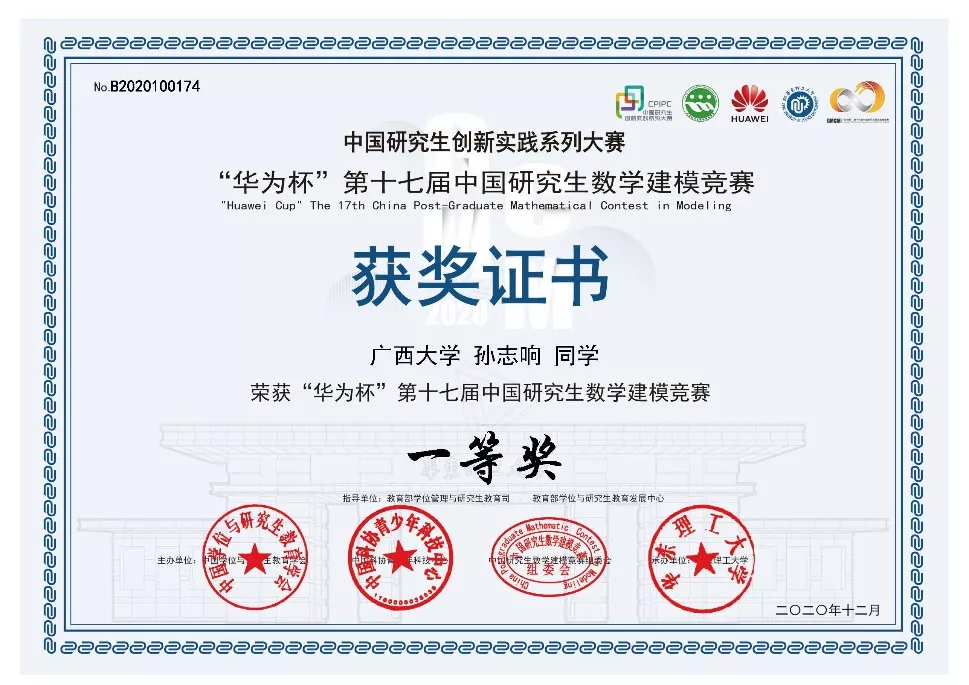 时光不愿辜负每一个心怀坚持之人,他们的队伍成为太阳成集团122ccvip近几年来唯一一支获得全国研究生数学建模一等奖的队伍。