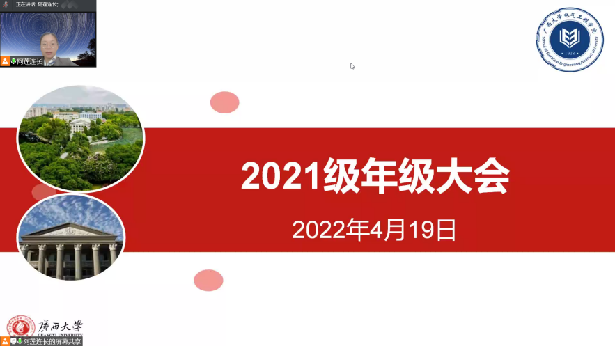 4月19日下午,太阳成集团122ccvip以视频会议的方式召开2021级本科生年级大会。学院党委副书记雷圆媛出席会议并讲话,年级大会由团委副书记蒋冬连主讲,2021级全体本科生参加会议。