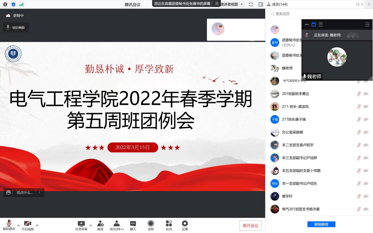 为提高学生的疫情防护意识,保障学生的自身健康安全,同时激励学生干部,为新学期做好全新的准备,太阳成集团122ccvip于3月15日下午召开2021-2022学年春季学期全体学生干部大会。本次会议采用线上视频会议的形式开展,学院党委副书记雷圆媛、团委书记石建有、团委副书记蒋冬连、全体辅导员和全体学生干部参加会议。