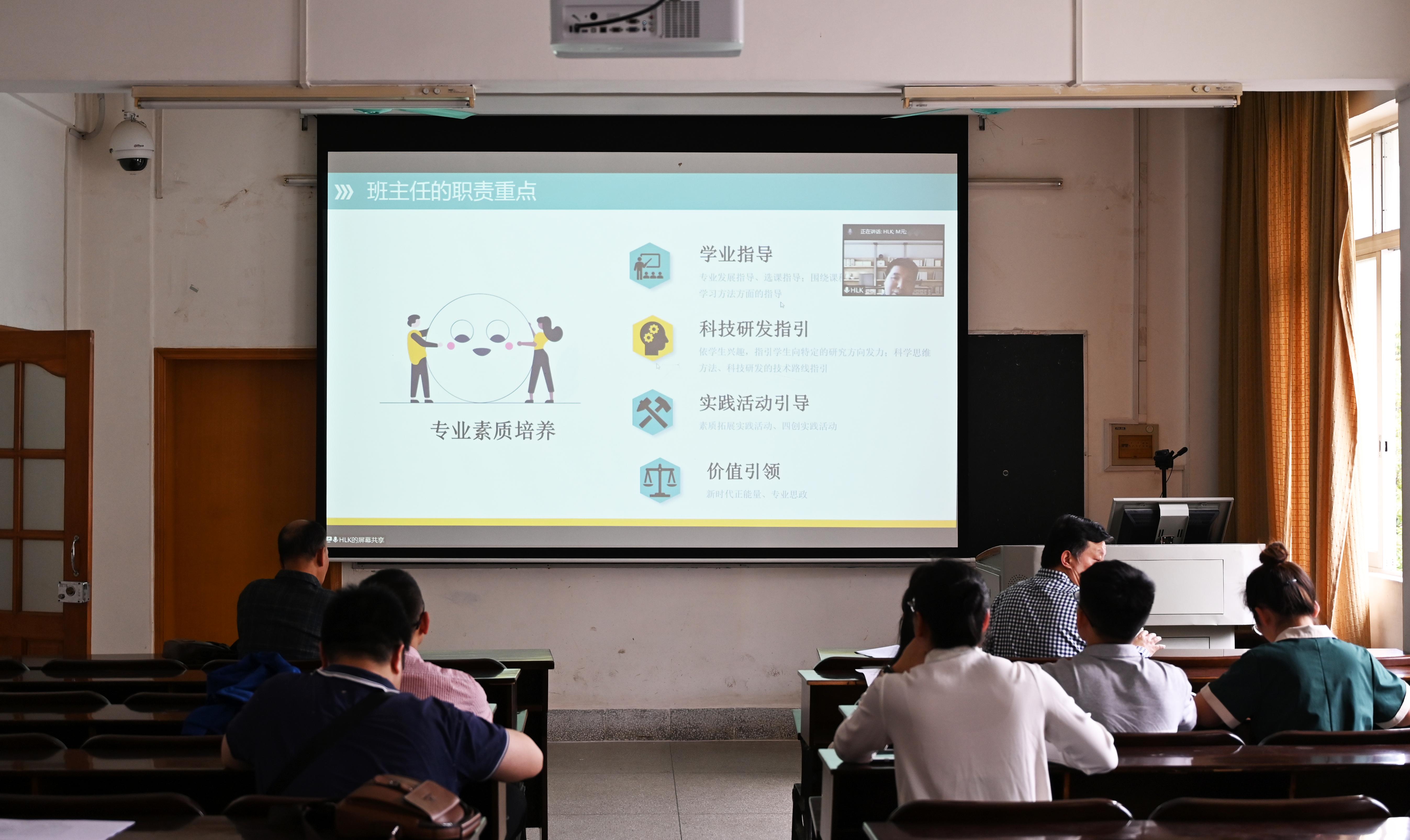 学院副院长胡立坤就学生学业规划及班主任相关工作对全体班主任进行培训,并提出三点希望:一是增加私下学术交流会,提高学生专业素养;二是工作要做细,通过多种形式确定学生是否真正掌握知识;三是从老师角度出发对压力大的学生进行及时进行心理疏导,对有挂科现象的学生进行单独的答疑。