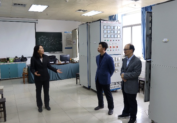 院长双丰首先带领大家参观了学院新东园实验楼的电力操作机器人、飞行巡检机器人等相关研究室,了解各研究室的研究内容和成果。随后,又来到综合实验大楼电气工程国家级实验教学示范中心,参观电力系统仿真实验室、PLC实验室、电气接线原理实验室等,了解实验教学相关情况。