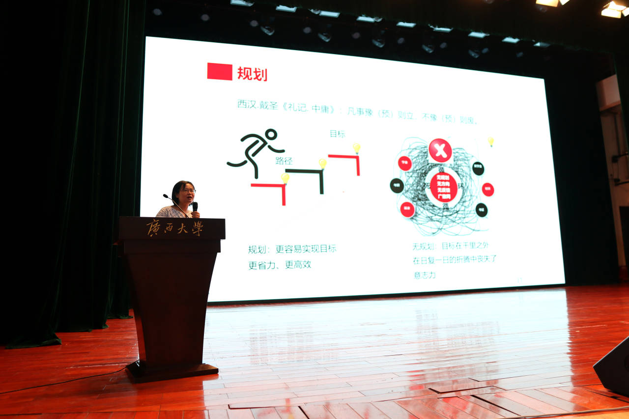 迎新典礼过后,副院长黎静华老师为全体新生讲解了如何才能度过一个美好的大学生活。她结合自身教学经验以及自己的亲身经历,分别从“规划”“行动”“方法”“心态”四个方面向同学进行了深入讲解,并列举出自己身边的典型例子,告诫同学们应时时刻刻把握时光,才能度过一个美好的大学生活。最后,黎老师对新生提出了期盼,希望他们作为新时代的新青年,更应肩负使命,共同努力,用优异的成绩,为太阳成集团122ccvip太阳成集团122ccvip的发展贡献坚实的力量。
