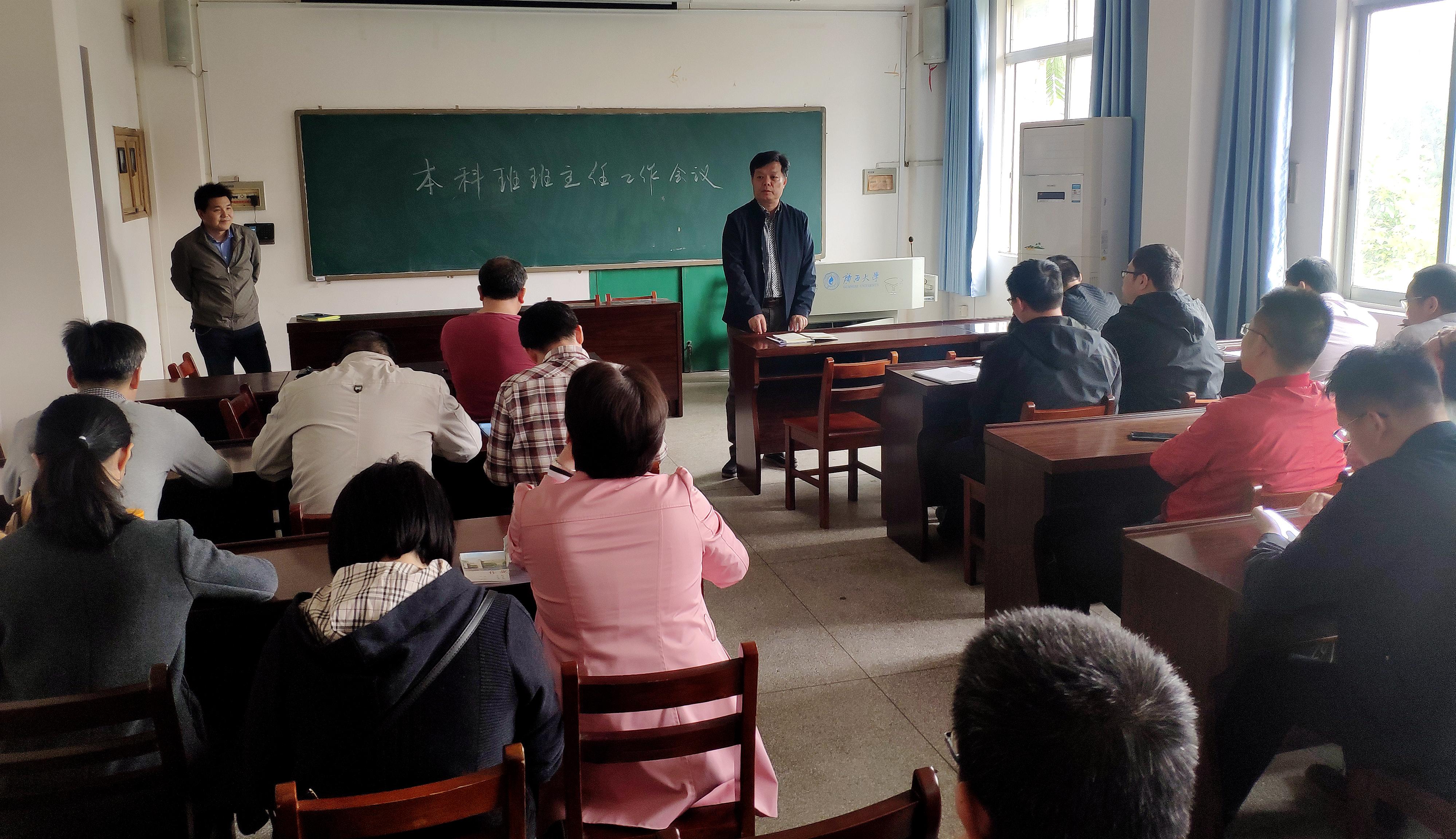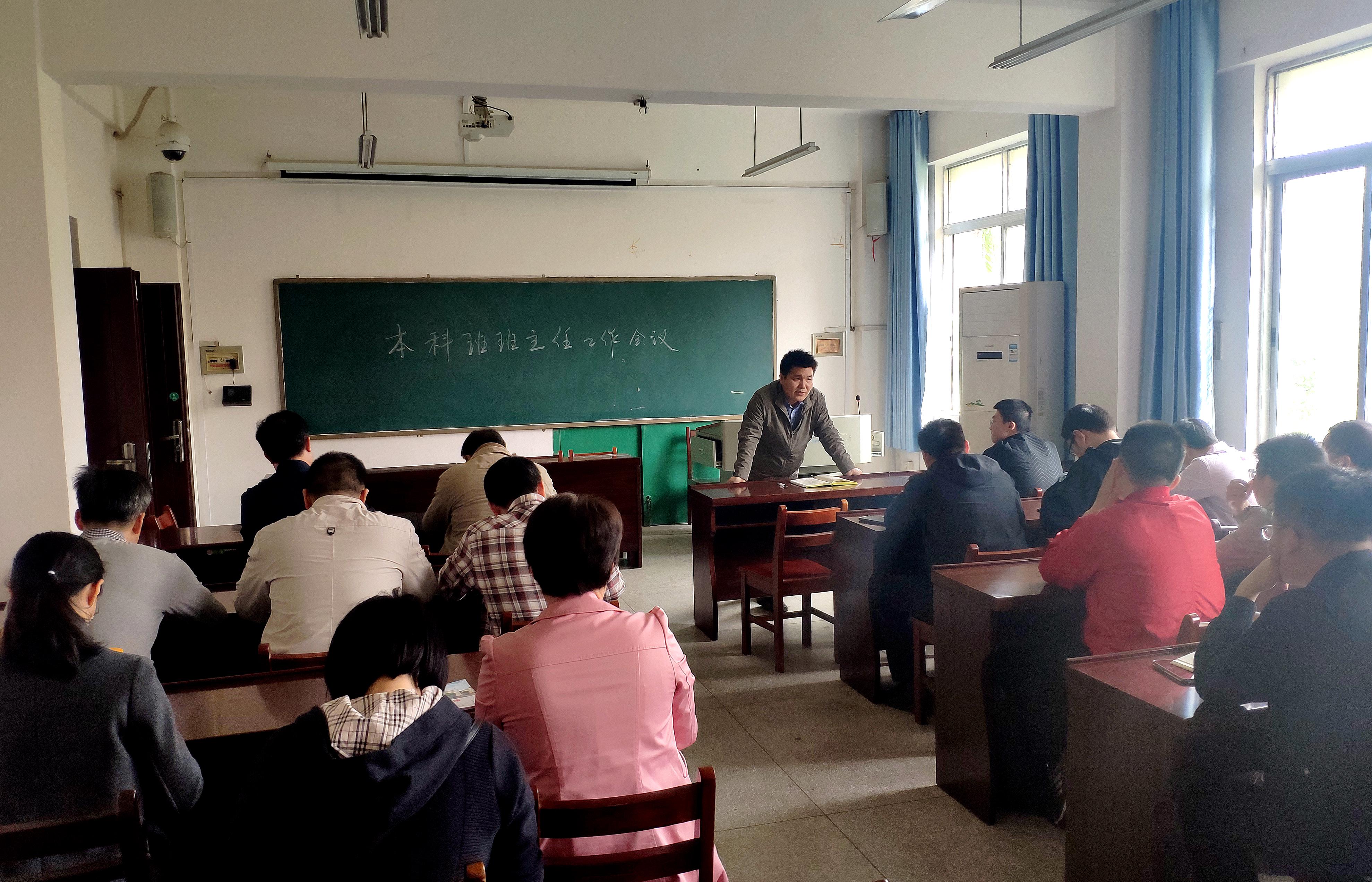 2021年4月6日下午在学院楼207室召开本科班班主任工作会议,参会的人员有主管教学的胡立坤副院长、主管学生工作的梁志坚副书记,以及各个年级的本科班班主任。会议由胡立坤副院长主持。会议议题是在学业帮扶活动中班主任如何发挥应有的帮扶作用。