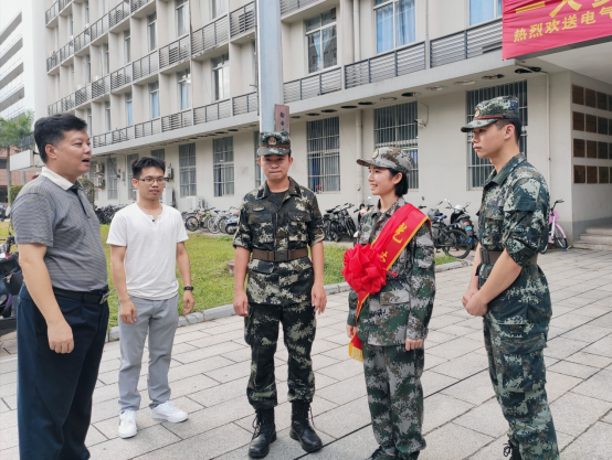 在交流环节,学院领导向参军入伍的谭志玲同学表达了崇高的敬意、送上了深情的祝福,希望她能尽早适应部队生活,成为一名优秀的大学生士兵,将“勤恳朴诚,厚学致新”的校训精神带到军营,为母校争光添彩。