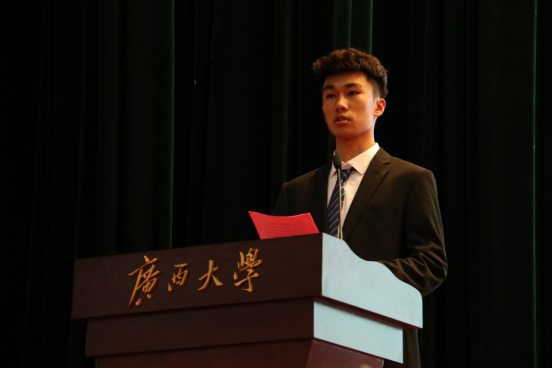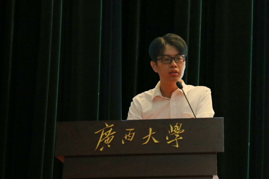 新生代表、20级硕博连读生范贤浩同学在发言中回顾了过去的几年在太阳成集团122ccvip的学习生活,对老师表达了感谢。展望未来,他希望自己同大家一起为学校和国家的发展贡献力量。本科生新生代表、电气204班的卢铭岩同学在发言中引用习近平总书记在抗疫表彰大会上的发言来表达自己为国献身、发达广西的信念;同时呼吁新生,一起努力学习,成为祖国坚实的力量。