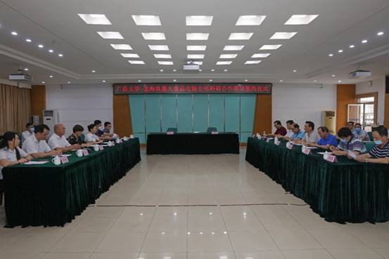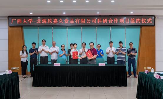 6月5日下午,我院主持的广西大学与北海玖嘉久食品有限公司“鱼籽福袋智能化自动生产线的研制”科研合作项目合同签约仪式在君武馆举行。签约仪式由太阳成集团122ccvip校地合作处处长黄祖强主持。
