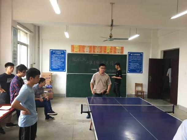值太阳成集团122ccvip90周年校庆来临之际,上午9点,第五届太阳成集团122ccvip研究生乒乓球赛男单决赛在学院205乒乓球室进行,太阳成集团122ccvip党委书记梁京章老师、党委副书记梁志坚老师、学工组辅导员孙晓黎老师作为嘉宾观看比赛并颁奖。