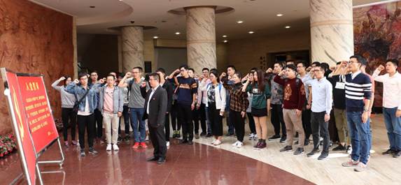 下午一点,研二支部循着先烈足迹、踏着台阶有序的到达百色起义纪念馆,并先后参观了红军桥、百色廉政教育展厅、百色起义英雄塑雕园、邓小平手迹碑林等教育景点。下午三点,在讲解员的带领下,研二支部依次参观了从纪念馆一楼的旧物陈列区到三楼的功臣厅,认真学习百色起义艰苦卓绝的革命历史和革命先辈百折不饶、不怕牺牲、无私奉献的革命精神。参观期间,支部党员和积极份子不时深情驻足,缅怀革命先烈、追思他们的光辉事迹。最后,在支部书记的带领下,支部全体党员面向“百色起义”浮雕和党旗重温入党誓词,激励支部党员要把革命先烈留下的红色圣火、革命精神传递下去。