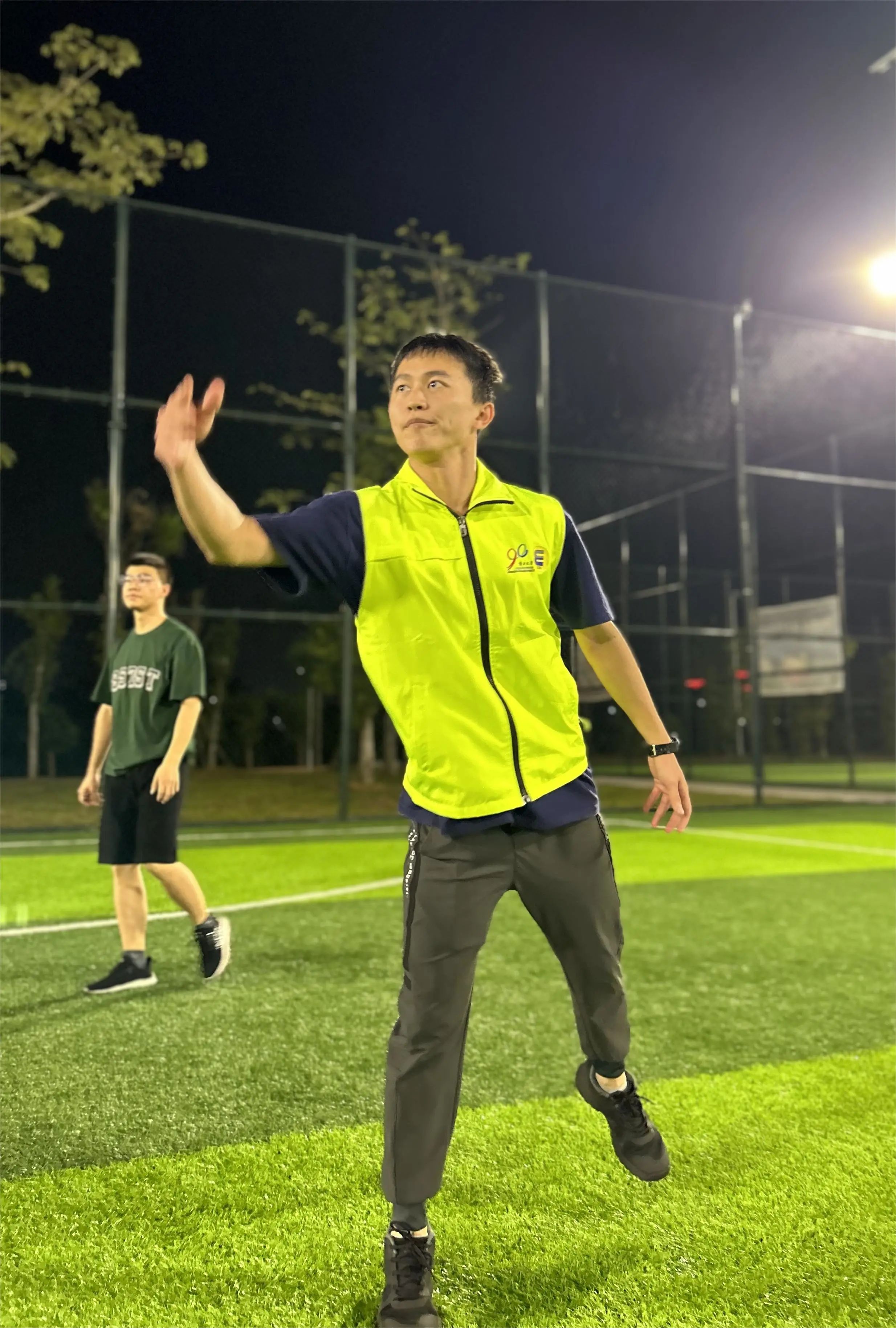 参赛队员们充满活力和激情,在赛场上互相打气,肆意奔跑、旋转跳跃,他们专注而敏锐地紧盯飞盘,不放过任何一个可以接住或传递飞盘的机会。