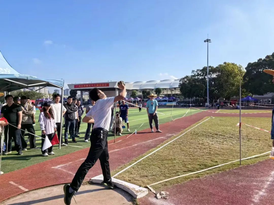 在径赛方面,我院运动员亦勇于争先取佳绩。他们的步伐快速有力,每一次迈步都充满力量和决心。在他们的眼中,胜利的终点线是他们唯一的目标,他们全力以赴去追逐。经过激烈的比拼后,我院李清华同学在女子1500米、女子800米比赛中分别取得了第1名、第3名,李广勇同学在男子100米比赛中取得第3名,向衡亮同学在男子800米比赛中取得第3名,邓俊龙同学在男子800米比赛中取得第4名,谢秉润同学在男子3000米比赛中取得第8名。