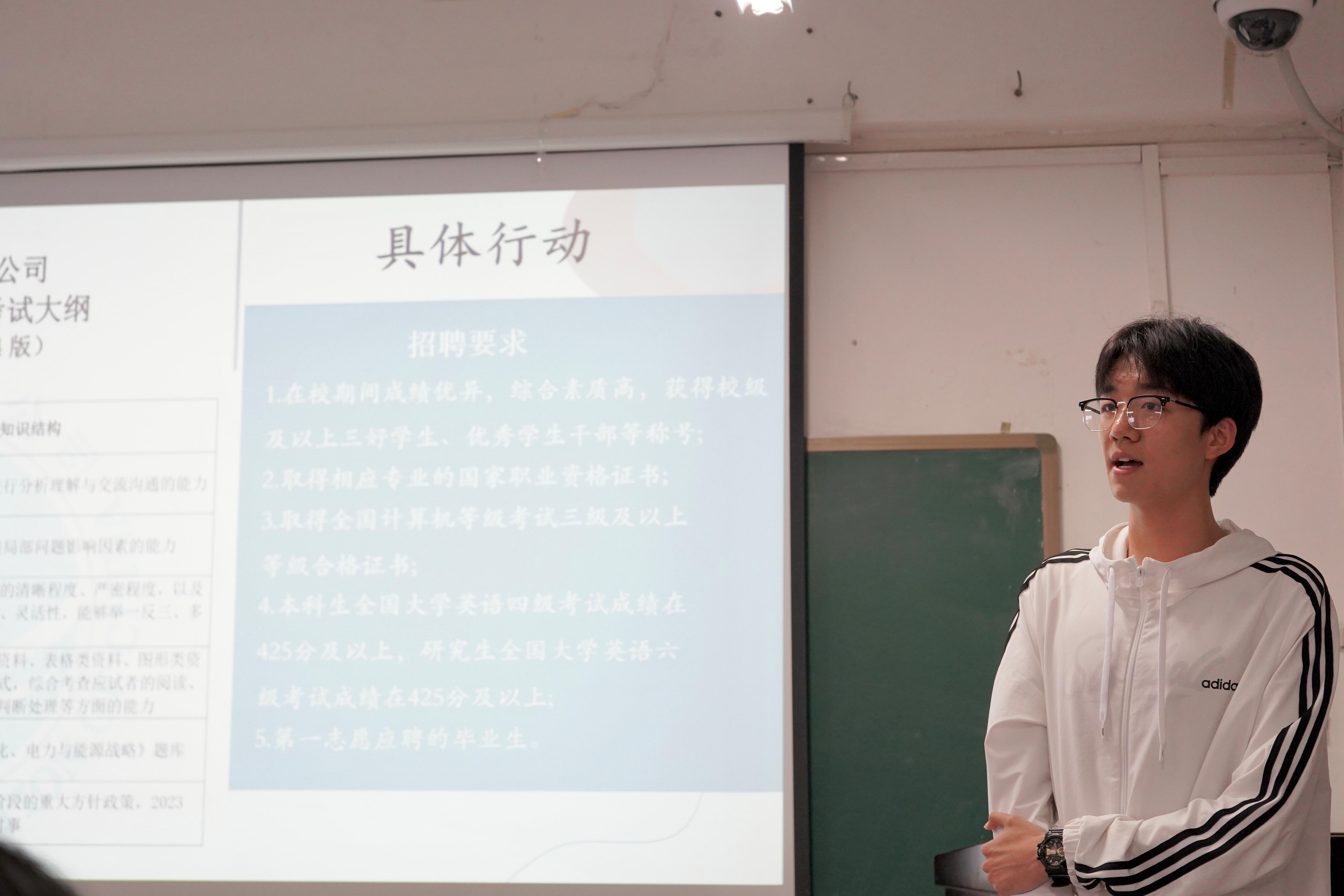 刘芋阳同学从个人情况、硕士阶段、行动成果与不足、目标职业以及总结五个层面展示职业规划,他巧妙结合经济全球化的国际背景和“一带一路”倡议对未来的职业发展做了深入阐释,表达自己砥砺奋进,争做第三代“电气人”的初心和使命。