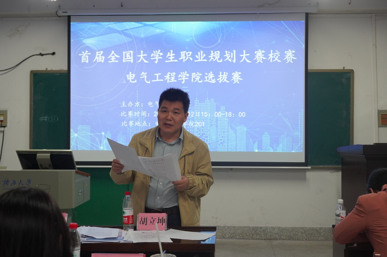 为了引导大学生树立正确的成才观、就业观和择业观,科学合理规划学业与职业发展,提升就业竞争力,12月12日下午,我院在学院201教室举办首届全国大学生职业规划大赛校赛院级选拔赛。我校教务处教师教学发展中心专职副主任胡立坤,我院副院长李畸勇,院团委副书记蒋冬连,辅导员李娟、李楠、李浩铭、何惠榕出席活动并担任评委。