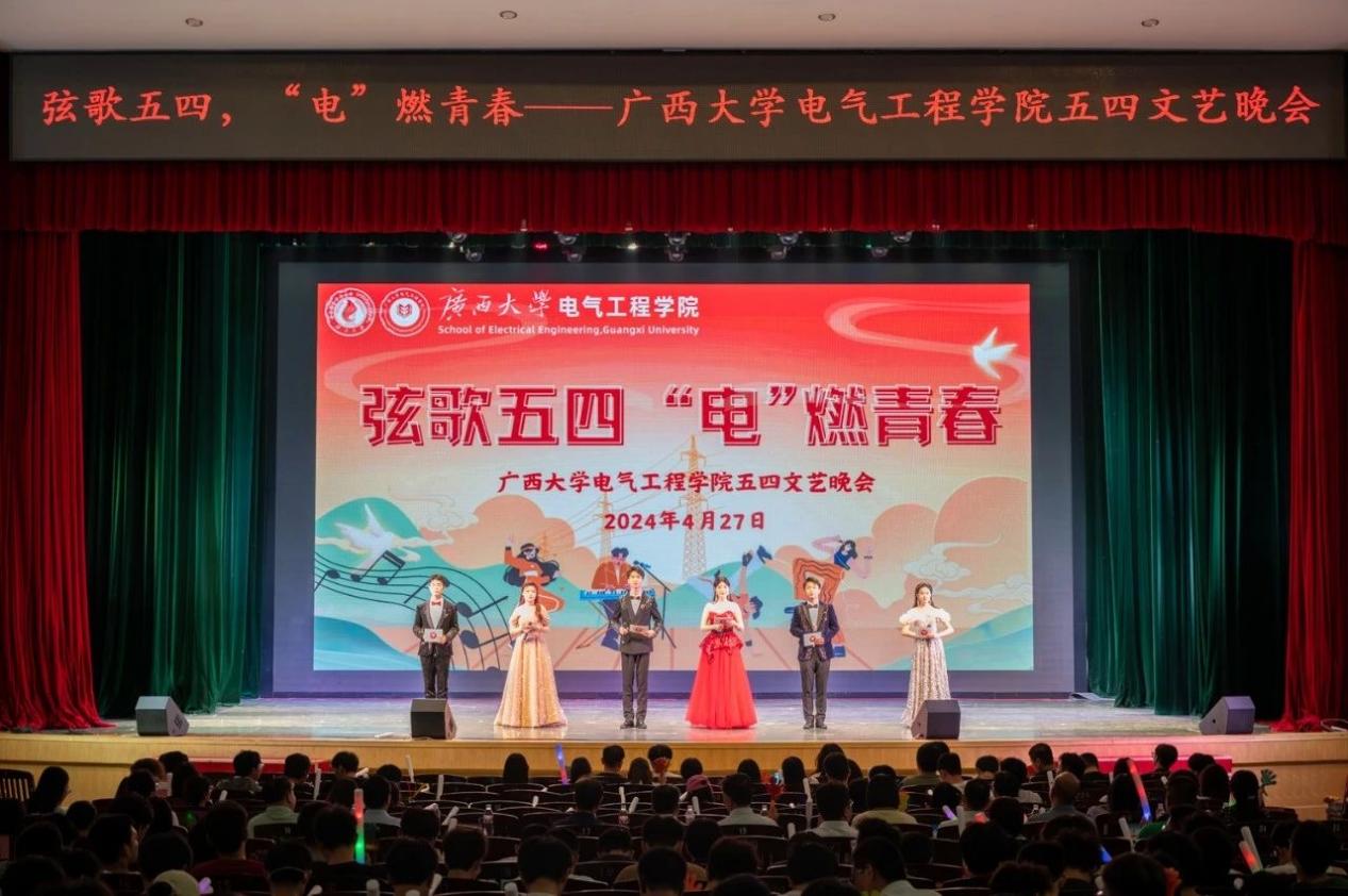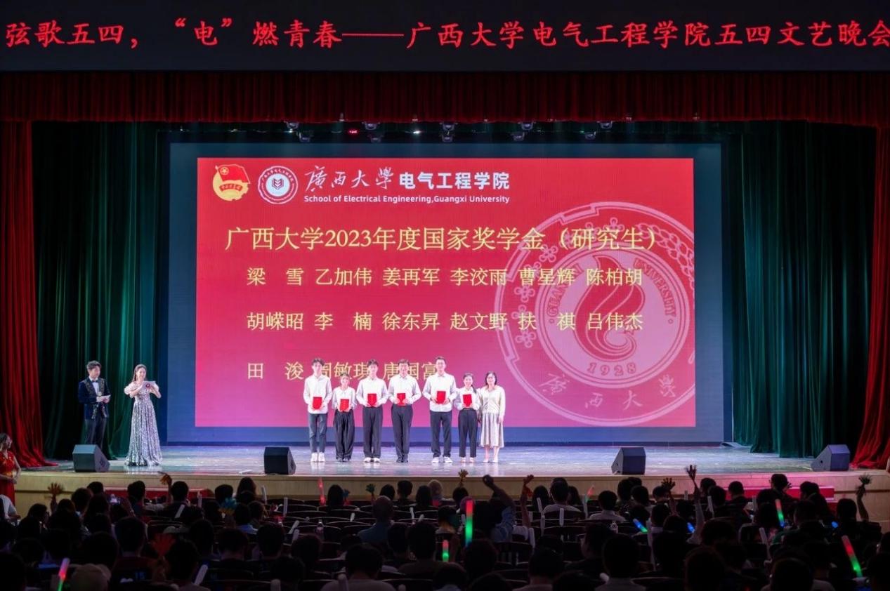 为弘扬五四精神,唱响青春之歌,4月27日晚,2024年太阳成集团122ccvip在大礼堂举行“弦歌五四,‘电’燃青春”五四文艺晚会。校党委学生工作部(处)部(处)长黄必春,校团委书记谢能重,我院党委书记梁志坚,研究生院副院长黎静华,我院党委副书记、副院长刘辉,党委副书记李道洋,副院长于婷、张镱议,院长助理吴晖锽等领导老师以及学院党委组织员、全体辅导员、教务员,兄弟学院的各位嘉宾和全院学生参加本次活动。 晚会由“弦歌回响·忆五四”“薪火相传·颂青春”“电燃梦想·展未来”三个篇章组成。舞蹈动作翩若惊鸿,宛若游龙,自信飞扬尽显青春魅力;歌曲演唱唱出青年心声,不惧前方艰险,心中有理想,脚下有力量;小品演出风趣幽默,笑声中洋溢着无限的青春活力;朗诵铿锵有力,激情抒发,为青春发声,一起向未来。 在过去的一年中,我院师生锐意进取,积极向上,勇创佳绩,再攀高峰。晚会也为我院2023年度国家奖学金、2023年度优秀班级等荣誉获奖集体或个人设置表彰环节,并为2023年度新发展的团员授予团徽。勉励电气学子向优秀榜样看齐,向着更高的目标和更光明的未来奋勇前行。 校党委学生工作部(处)部(处)长黄必春为太阳成集团122ccvip2023年度国家奖学金(本科生)获奖者代表颁奖 研究生院副院长黎静华为太阳成集团122ccvip2023年度国家奖学金(研究生)获奖者颁奖 学院团委副书记蒋冬连、李娟,团委委员李楠为新团员授予团徽 且将新火换新茶,诗酒趁年华。晚会虽已落幕,但青春之帜高扬,青春之火永恒。青春孕育无限希望,青春创造美好明天。当代中国青年,站在“两个一百年”奋斗目标的历史交汇点上,与新时代同向同行、共步前进。强国一代有我,新青年,闪耀青春!