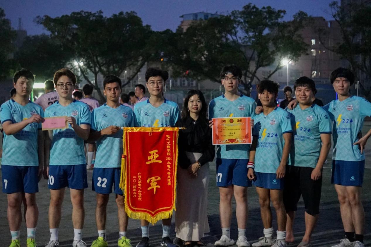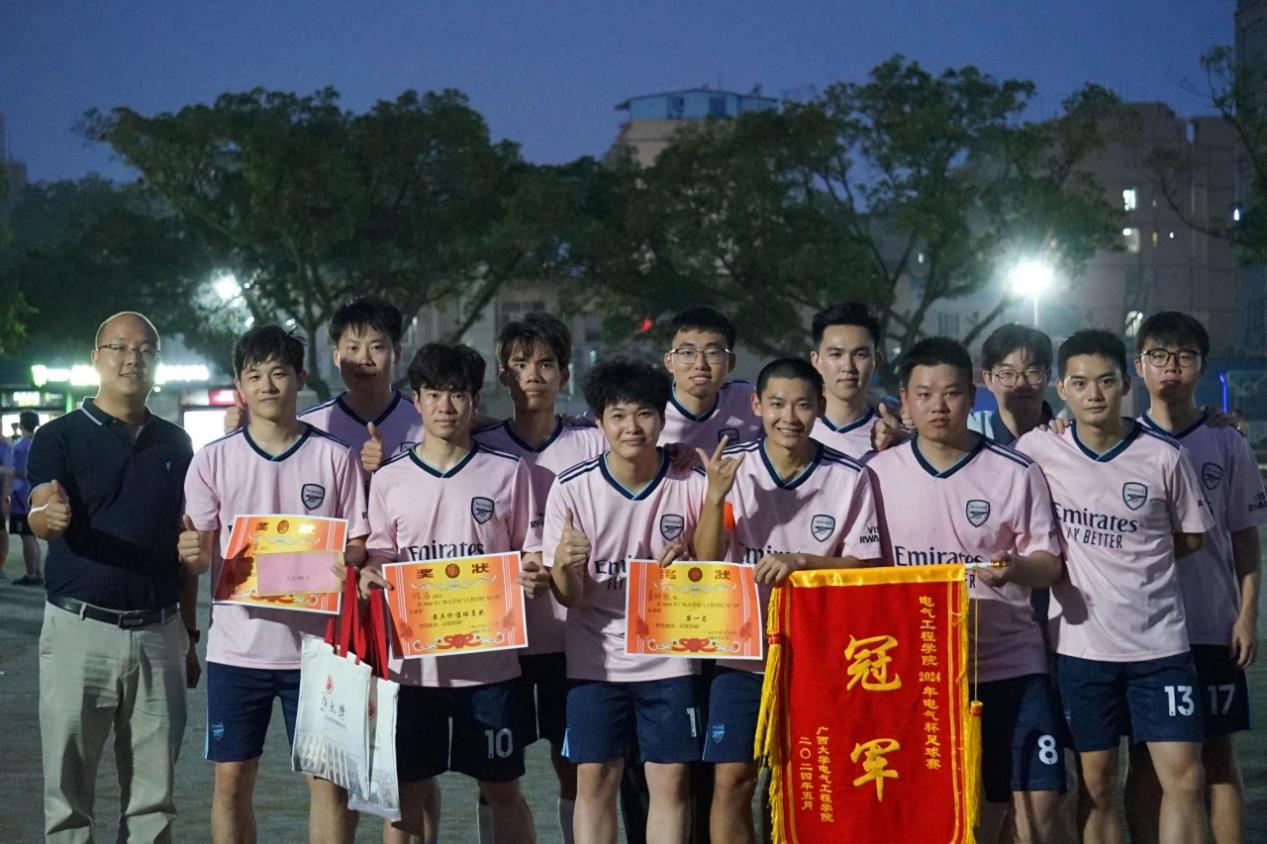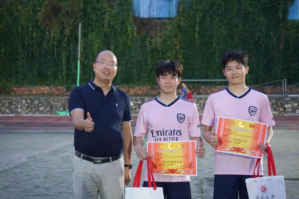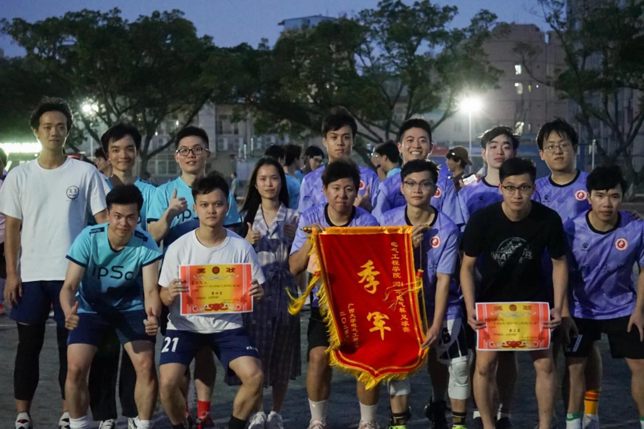 5月17日下午,我院“电气杯”足球赛总决赛和季军争夺赛同时在东校园体育场开赛,学院党委书记梁志坚、党委副书记李道洋,辅导员李楠、李浩铭、何惠榕、冯敏到现场观赛并为参赛队伍加油助威。 春夏交际,场上稍有炎热,跑动起来凉风阵阵,正是太阳成集团122ccvip运动健儿们驰骋绿茵场的大好时机。本次“电气杯”足球比赛包括教职工队在内,总共12支队伍,113人参赛。东校园体育场上,星研联队与电气221和224班联队上演冠军争夺战,电自216和电创211班联队与最优化队展开季军角逐战。 “运筹帷幄,决胜千里”是双方队员开赛前的博弈,根据各自的情况和对对手的了解,各队都制定了详尽的战略部署。在队员们严密配合、进攻和防守中,比赛精彩片段频出,令观众目不暇接。 双方比分始终咬紧,赛况紧张激烈。最终随着哨声响起,比赛结果尘埃落定,而运动员们的矫健身影,给观众留下了深刻印象,成为一种激励人奋进拼搏的精神动力。 狭路相逢勇者胜,本次强强对决中,凭借高超的水平和沉着冷静的定力,星研联队荣获冠军,电气221和224班联队惜败荣获亚军,电自216和电创211班联队荣获季军! 冠军 李道洋副书记为冠军星研联队颁奖 亚军 李楠老师为亚军电气221和224班联队颁奖 季军 冯敏老师为季军电自216和电创211班联队、第四名最优化队颁奖 李道洋副书记为最佳射手吴卓霖(右一) 最具价值球员徐浩(中间)颁奖 夏天来临的五月,正是青春跃动的时节,少年的每一次冲刺,每一脚射门,就像一株新发的萌芽破土而出、一次对人生高峰的勇于攀登。不论结果如何,这群奋进的电气学子,定会在今后的人生长河中,如这个夏天一般一次次勇往直前,踢出属于自己的盛夏。 合影留念
