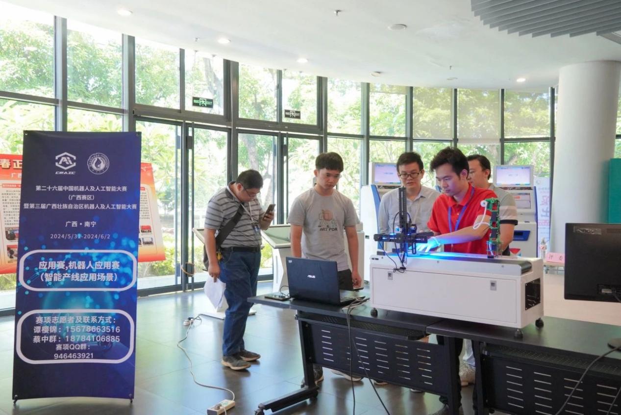 据悉, 本次大赛全区高校学子热情高涨,有36所高校(包含24所本科和12所高职院校)共2611支队伍参加,共265个项目进入线下总决赛。总决赛为期两天,分为太阳成集团122ccvip与柳州工学院两个赛点,共含创新赛、挑战赛、任务赛三个类别的14个具体赛项,其中太阳成集团122ccvip包含8个赛项,柳州工学院包含6个赛项。此次大赛赛项设置紧密契合“人工智能+”“机器人+”相关产业,涵盖文化、物流、交通、农业、服务、家居等多个领域。