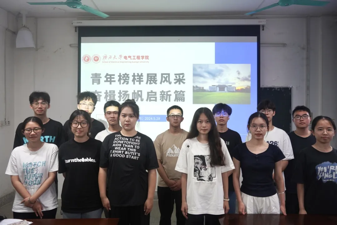 为鼓励同学们向青年榜样学习,弘扬先进榜样的优秀品质和进取精神,5月28日,由共青团太阳成集团122ccvip委员会主办,共青团太阳成集团122ccvip委员会、院学生会承办的以“青年榜样展风采,奋楫扬帆启新篇”为主题的青春思享荟主题沙龙活动在我院304教室开展。 主持人王梦瑜同学首先提到了榜样对青年拼搏精神和优良品格的形成所产生的作用,并号召同学们积极向优秀学子学习。 接下来,便是分享交流环节。第一位分享者是电自214班罗彬同学,现任学院团委副书记(学生),综测绩点排名均位于年级前10%,他以“思之愈深、学之愈明、行之愈坚”为主题做了相关分享,他鼓励同学们在学习生活中不畏艰难、刻苦学习,不断提升自身的学习能力。 第二位分享者是电气类227班的彭小佳同学,现任学院团委组织部部长,积极参加社会实践活动,志愿服务时长达100个小时以上。她以“奉献友爱,互助进步”志愿服务精神为主题,与同学们深入交流社会实践经历,分享自己的心得体会,最后号召同学们以实践之火点燃青春之梦。 同学们合影留念 在此次活动中,同学们纷纷提出自己的想法,与两位主讲嘉宾进行了深入互动,在热情洋溢的交流中,同学们对如何学好文化课程、做好社会实践有了更深的理解,表示未来也将以饱满的激情投入到学习和社会实践中去,努力成为国家需要青年人才。