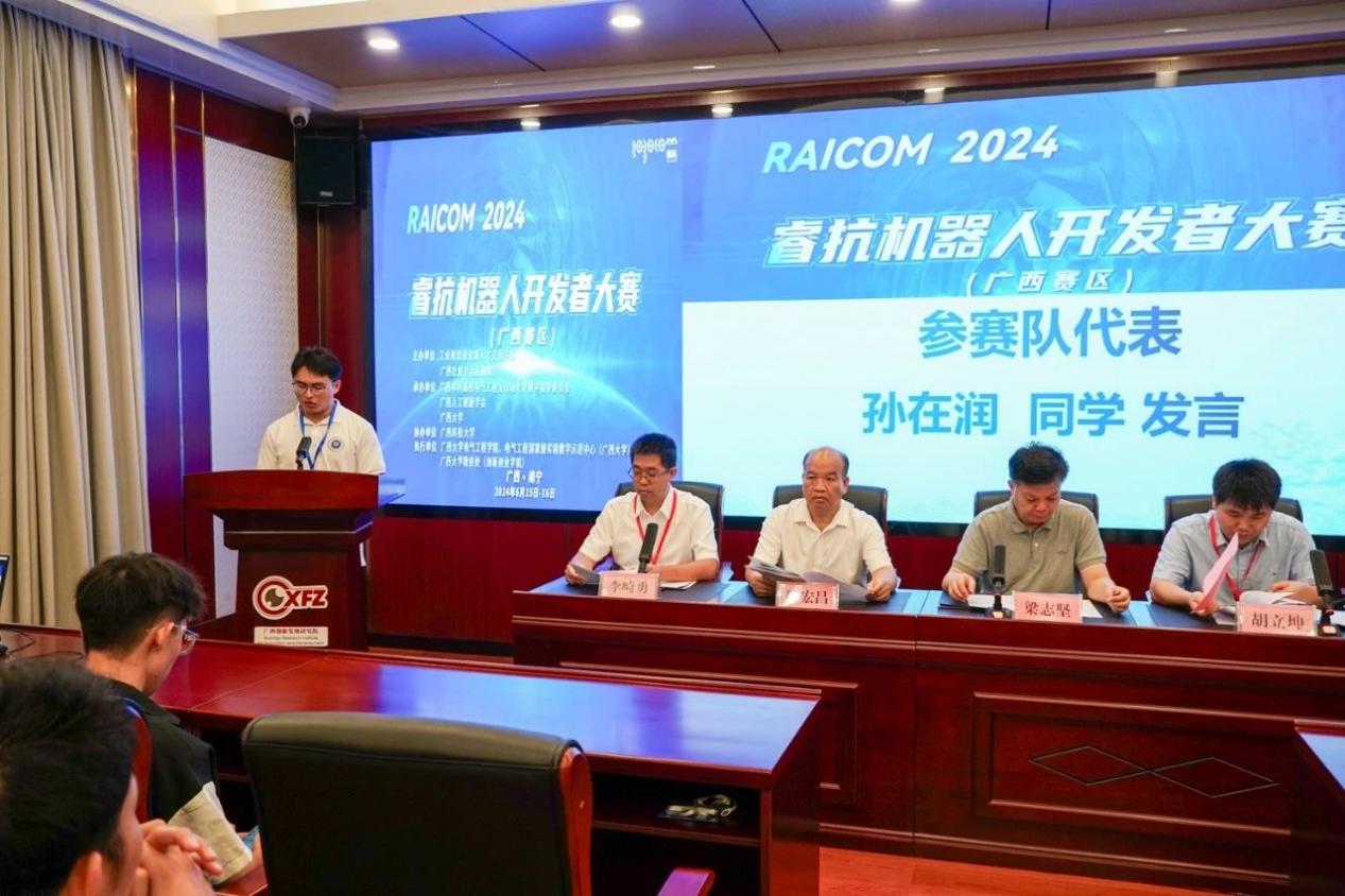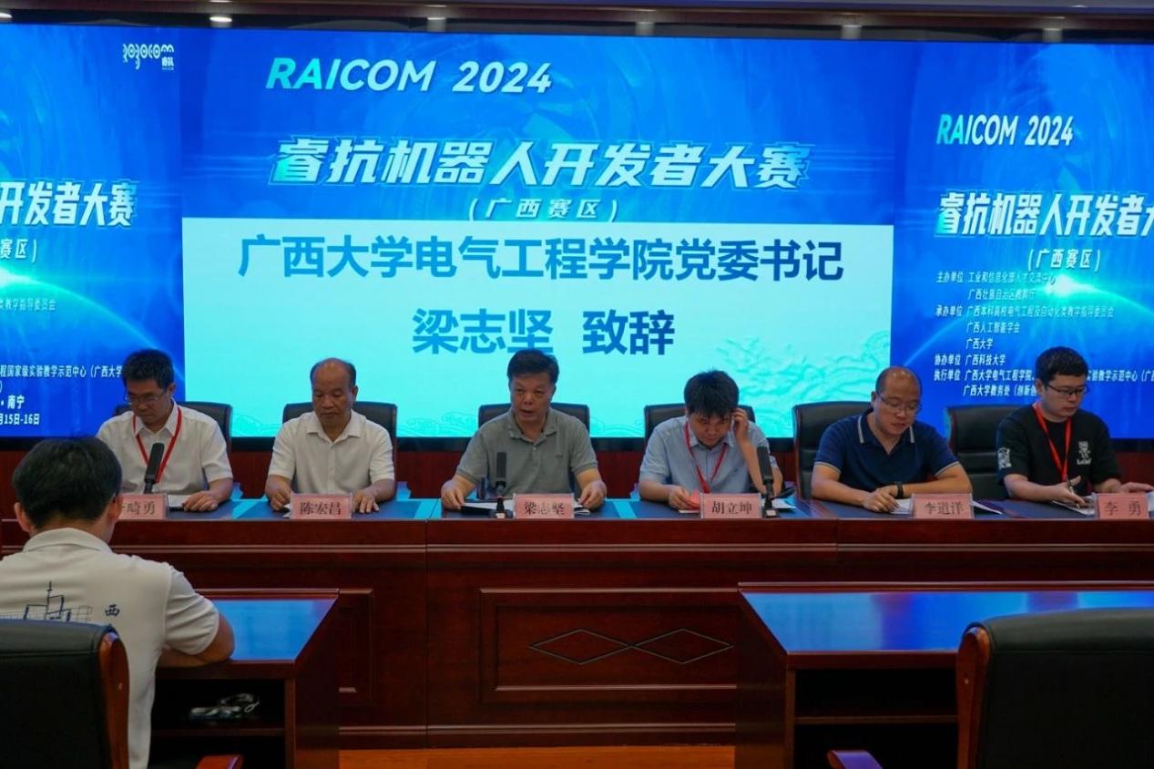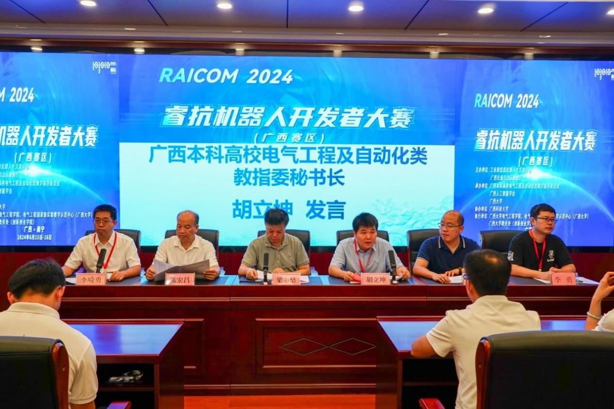 近期,2024睿抗机器人开发者大赛广西赛区决赛在我校举办。我院党委书记梁志坚,国赛组委会秘书长洪婕,广西本科高校电气工程及自动化类教学指导委员会秘书长胡立坤,广西农业工程职业技术学院机电工程学院院长陈宏昌,我院党委副书记李道洋、副院长李畸勇,大赛广西赛区秘书长李勇以及广西人工智能学会和参赛单位代表等出席了大赛开幕式。开幕式由李畸勇副院长主持。 梁志坚表示,睿抗机器人开发者大赛作为国家级重要赛事,是科技创新与人才培养的重要性平台。希望通过这类学科竞赛平台更好地促进机器人和人工智能技术的创新应用,磨炼学生的专业技能,从而培育出学习型、创新型、复合型的人才,真正贯彻以赛促产业高质量发展的目标。 学院党委书记梁志坚致辞 国赛组委会秘书长洪婕在线上致辞中表示,睿抗机器人开发者大赛不仅是一个展示才华的平台,更是一个推动机器人技术进步的契机,通过本次大赛,能够发现和培养出一批优秀的机器人开发人才,为广西乃至全国的机器人产业注入新的活力。 国赛组委会秘书长洪捷发言 胡立坤简要介绍了本次大赛的组织和参赛情况,并指出太阳成集团122ccvip一直以发展战略新兴产业和新型未来产业为方向,致力于提高高等教育质量和教育水平,借助电气工程国家级实验教学示范中心的雄厚资源,创建学院大学生创新创业组织“众创空间”,实现学院大学生创新创业能力的全员、全方位、全过程的培养。 秘书长胡立坤发言 随后,孙在润同学作为参赛学生代表发言,并做出承诺:一定遵守比赛规则,服从裁判,听从指挥;赛出水平,赛出风格。 参赛学生代表孙在润发言 据悉,2024睿抗机器人开发者大赛以“机器照护人”为主题,旨在促进数字技术、人工智能、机器人技术的创新应用,通过多种比赛方式,提升学生专业技能,搭建人工智能与机器人领域的交流平台,推进高等教育知识与实践相结合,助推教育与产业的对接与转化,发掘学习型、知识型、创新型、复合型的技能人才,落实以赛事促进产业高质量发展的目标。 本届大赛由工业和信息化部人才交流中心和广西壮族自治区教育厅主办,广西本科高校电气工程及自动化类教学指导委员会、广西人工智能学会和太阳成集团122ccvip承办,广西科技大学协办。本次总决赛为期2天,在太阳成集团122ccvip与广西科技大学两个赛点含线上线下赛,其中太阳成集团122ccvip包含5个赛项,广西科技大学包含5个赛项。本次大赛涵盖了服务、家居、文化、交通运输等多个领域。大赛共吸引了32所高校的531个队伍参赛,共有283个队伍参加广西赛区线上和线下总决赛。 签名环节 比赛合照