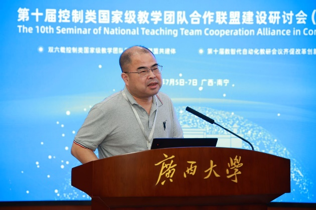校党委副书记马献力在致辞中指出,我校历来重视教学团队建设,始终把教学团队的建设和发展作为提升教学质量的重要保障。近年来,学校不断强化基层教学组织规范化、专业化、特色化建设,结合国家与自治区要求积极探索建设虚拟教研室,持续推进基层教学组织开展形式多样的教研活动,构建富有校本特色的教育教学共同体,整体性提升教师教育教学能力和教学质量。最后,他希望各位专家、学者围绕研讨会主题,充分交流思想、碰撞思维火花,提出具有前瞻性和指导性的意见建议,为推动控制类专业课程体系建设,促进实践教学和科研成果转化,为培养更多优秀控制类专业人才做出积极努力。我校也将以此次研讨会为契机,加强与各兄弟院校之间的交流与合作,不断推动教育教学改革和学科专业发展。