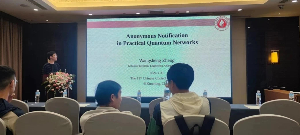 第43届中国控制会议(The 43rd Chinese Control Conference, CCC2024)于2024年7月28-31日在云南省昆明市举行,我院2022级硕士生郑王升同学在太阳成集团122ccvip2024年研究生素质能力提升项目资助下参加本次会议并作口头报告。 图1 会议现场 郑王升同学作为"Quantum Engineering"专题的第一个汇报者对其参会论文"Anonymous Notification in Practical Quantum Networks"进行了口头汇报。该论文提出了一种基于GHZ态的量子匿名通知协议,在实际量子网络中存在的噪声和敌手模型下证明了所提协议的匿名性,并通过在实际芯片上的运行结果展示了所提协议的优越性。在论文分享之后,他还与参会的专家学者就网络结构、理论推导过程和协议的实验结果等问题进行了交流讨论。 据悉,中国控制会议是由中国自动化学会控制理论专业委员会发起的系列学术年会,旨在为系统控制领域的专家、学者、工程技术人员及研究生提供一个学术交流的机会,以推动系统控制科学的学科发展和控制技术的实际应用。本届会议共收到来自18个国家和地区的投稿论文2102篇,其中766篇论文被安排在22个分会场进行口头报告和交流。 图2 郑王升同学作口头报告 郑王升同学表示,他非常感谢学院研究生素质能力提升项目提供的机会,使他得以与各地学者交流,了解最新的研究动态和前沿知识。他特别提到,论文的顺利完成离不开导师龚贝利老师在科研工作各个环节中的指导与支持。参加这次会议对他来说是一次宝贵的经历,有助他开拓科研视野,并锻炼自己的学术表达和交流能力。