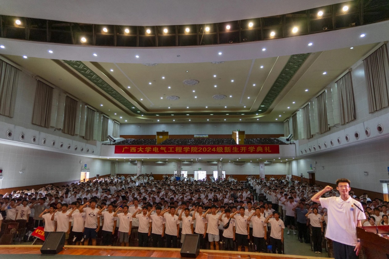 电气工程及其自动化242班本科生张钧然同学代表全体2024级新生发言。张钧然同学表示在未来四年要不断积蓄“电能”,练好内功,提升修养,点亮人生的璀璨道路,并号召同学们心怀“国之大者”,坚毅奋斗,锐意进取,探索科学的最前沿,勇攀知识的最高峰,奔赴属于自己的星辰大海。