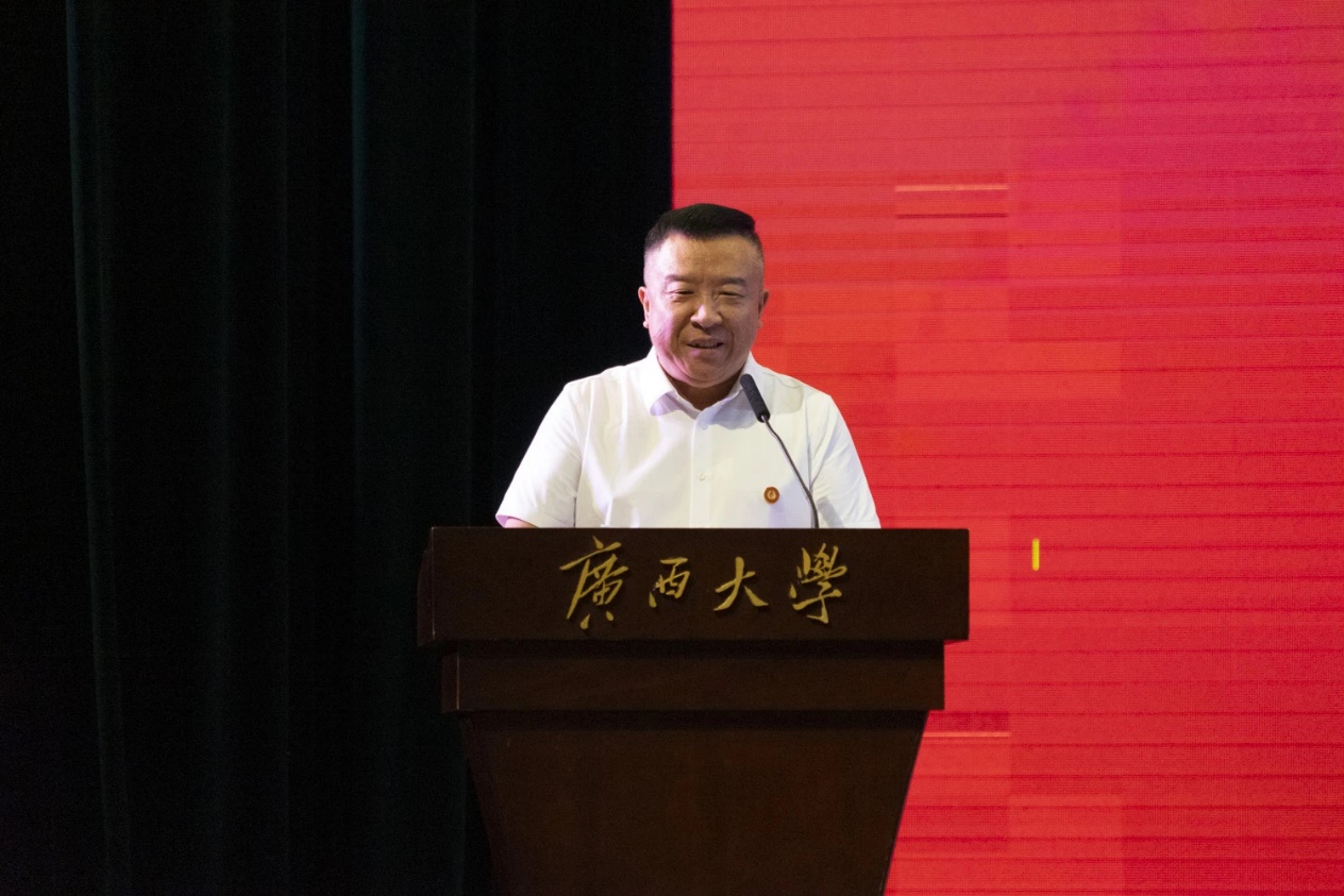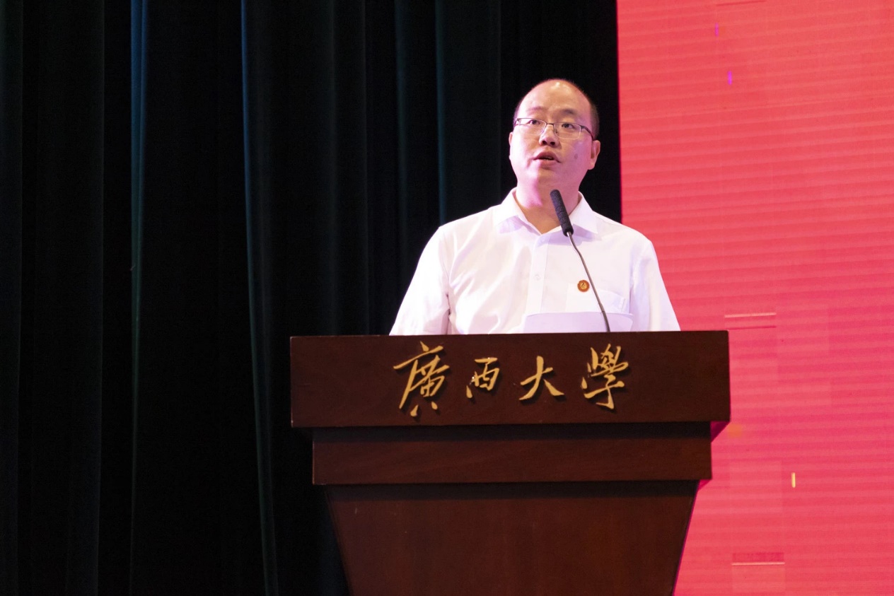 院长武新章教授向加入太阳成集团122ccvip大家庭的新生表示欢迎和祝贺,向辛勤培育新生的家长及老师致以敬意和感谢。他回顾了学院的发展历程,重温了首任校长马君武“勤恳朴诚”校训的丰富内涵:一是勤奋。勤奋是治学的品格,同学们进入大学之后要保持状态,勤学好问。二是恳切。要学会恳切地学、恳切地问、恳切地解决问题,锻炼思考、判断、独当一面的能力。三是朴实。要培养朴实的品格,内心坦诚,坚定目标,脚踏实地,注重礼貌。四是诚信。诚信是做人之本,同学们要忠诚于党,忠诚于祖国,在学业上严于律己,坚守学术诚信。最后,武院长希望“勤恳朴诚”能成为我们的精神文化,滋养每一位师生,变成我们的学术精神、价值追求、做事原则。