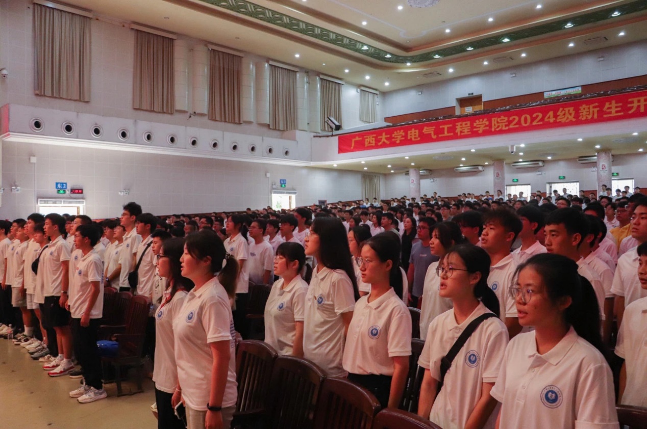 9月5日,我院在大礼堂举行2024级新生开学典礼。学院党委书记梁志坚,国家海外高层次人才、院长武新章,国家重大人才工程入选者、学院党委副书记、副院长刘辉,爱思唯尔中国高被引学者榜单入选者陈武华,党委副书记、纪委书记李道洋,副院长李畸勇、郑天和,自动化系主任李修华,实验教研室主任徐俊华,新生班主任、学工组全体辅导员、2024级835名新生参加开学典礼。典礼由李道洋副书记主持。