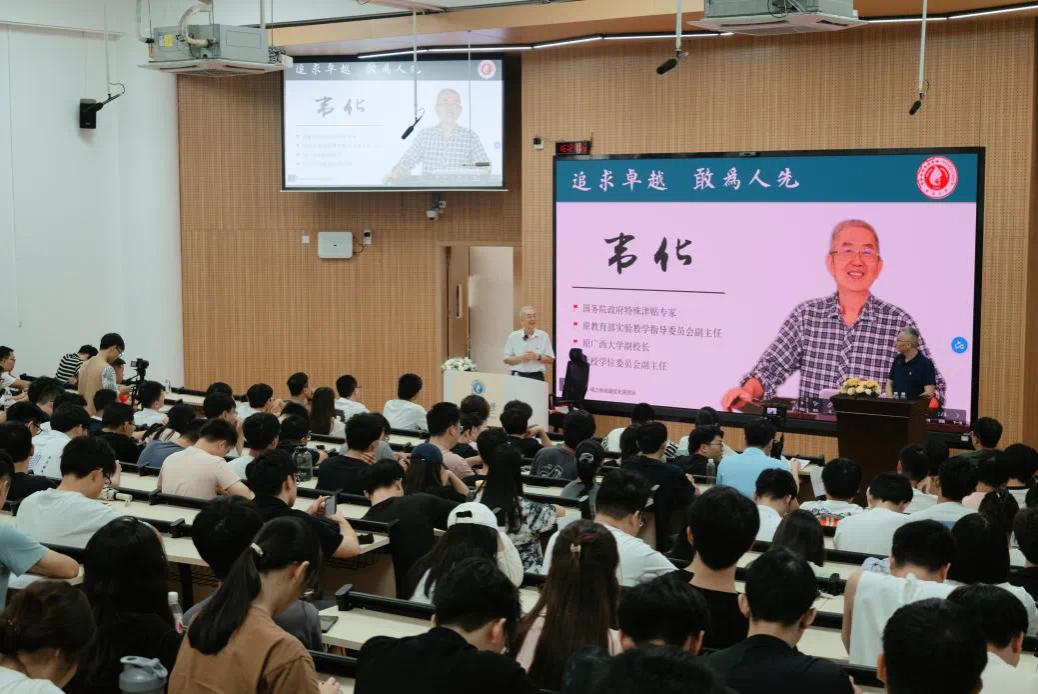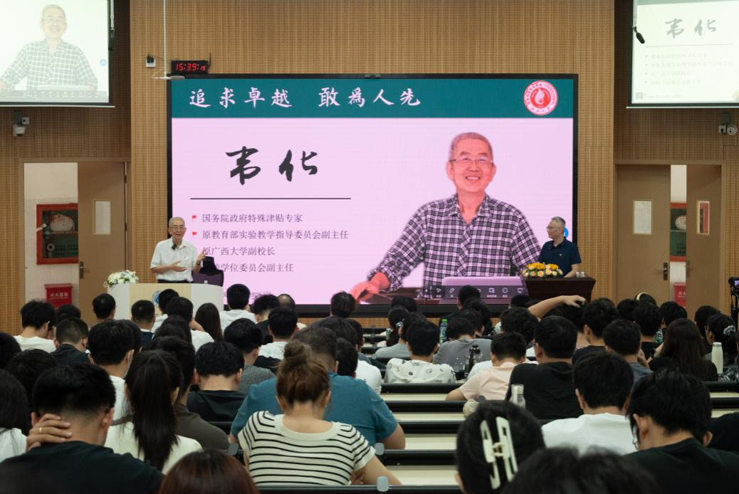 9月6日下午,我院在东十教10A-305多媒体教室开展主题思政教育。此次活动采取了访谈和对话的形式进行,由研一支部书记覃智君主持,邀请了教育部实验教学指导委员会原副主任、太阳成集团122ccvip原副校长韦化教授作为访谈嘉宾。我院9个研究生党支部共265名党员参加此次活动。