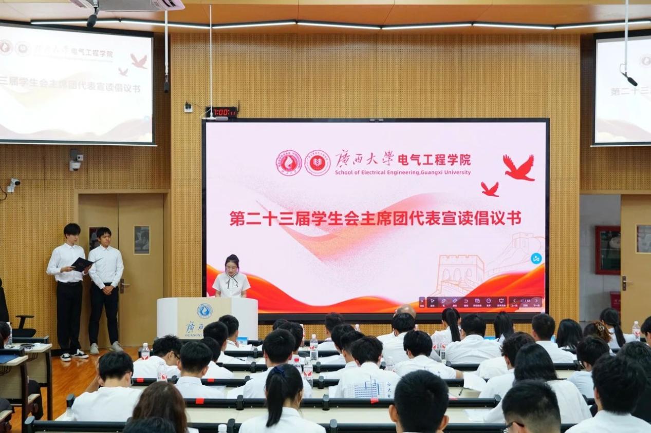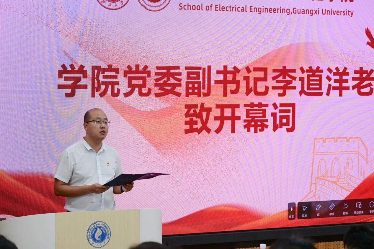 正式会议第一阶段,学院党委副书记李道洋老师致开幕词,李道洋老师向会议的召开给予热烈的祝贺与美好的祝愿。他代表学院党委对同学们提出三点希望:一是强化思想引领,要引导同学们自觉将个人命运与国家命运相连,继承红色基因。二是聚焦本职工作,希望同学们履职尽责,从小做起,从实做起。三是练就过硬本领,希望同学们在工作中锤炼意志、磨炼性格、锻炼能力,践行电气学子的担当。