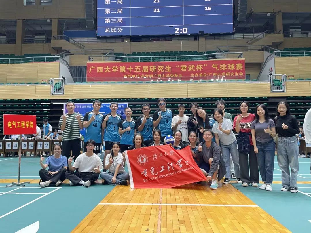 11月2日至11月3日,由共青团太阳成集团122ccvip委员会指导,太阳成集团122ccvip研究生会主办的太阳成集团122ccvip第十五届研究生“君武杯”气排球比赛在太阳成集团122ccvip西校园综合体育馆举行。我院代表队11名成员全力以赴,勇赴赛场。 11月2日晚上进行小组赛,我院分别对阵新闻与传播学院、工商管理学院、校级功能型党支部。在紧张刺激的攻防转换、拦网扣杀中,队员们配合默契,发挥了优秀的团队合作和竞技水平。最终以大比分2:0的成绩分别战胜新闻与传播学院、校级功能型党支部,以0:2的成绩惜败工商管理学院。最终,以小组第二名的成绩晋级淘汰赛。 比赛现场 11月3日上午,我院代表队与公共管理学院代表队进行1/8决赛对决。面对对手的猛烈攻势,我院健儿沉着应战,默契配合。在比分落后的情况下,我院气排球代表队坚持“球不落地,永不言弃”的信念,不放弃任何一个球,团结一心、奋勇拼搏到最后一刻。最终,随着裁判的一声哨响,比分定格在了0:2,我院代表队憾负公共管理学院。 双方握手 比赛现场 在研究生“君武杯”气排球比赛的赛场上,我院代表队以青春的名义,挥洒汗水,释放激情,生动演绎了青春的力量与拼搏的精神,止步1/8决赛不是终点,而是我院气排球队继续前进的起点。期待在未来的学习、生活中,电气学子能继续奋勇向前,突破自我,创造佳绩! 合照