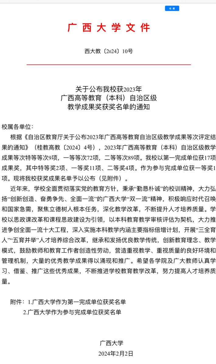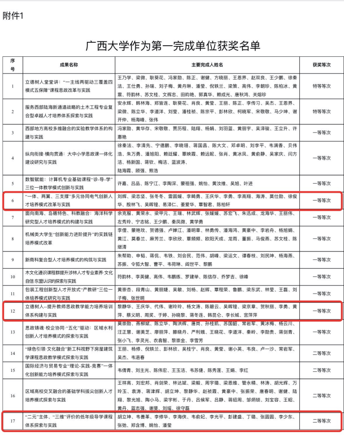 我院喜获三项2023年广西高等教育(本科)自治区级教学成果奖,刘辉副院长、黎静华教授的主持项目均获得一等奖,胡立坤教授主持项目获得二等奖。
