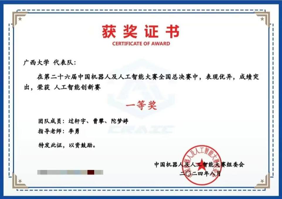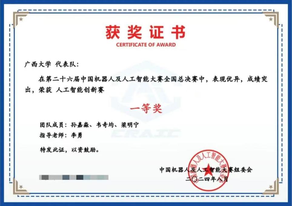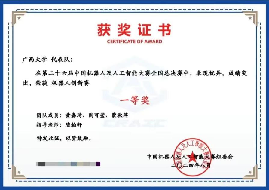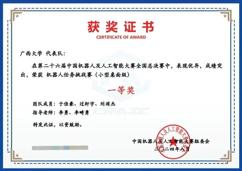 我院在第二十六届中国机器人及人工智能大赛中取得佳绩,本次获奖成绩为我院学生历年来在该项赛事上取得的最好成绩。