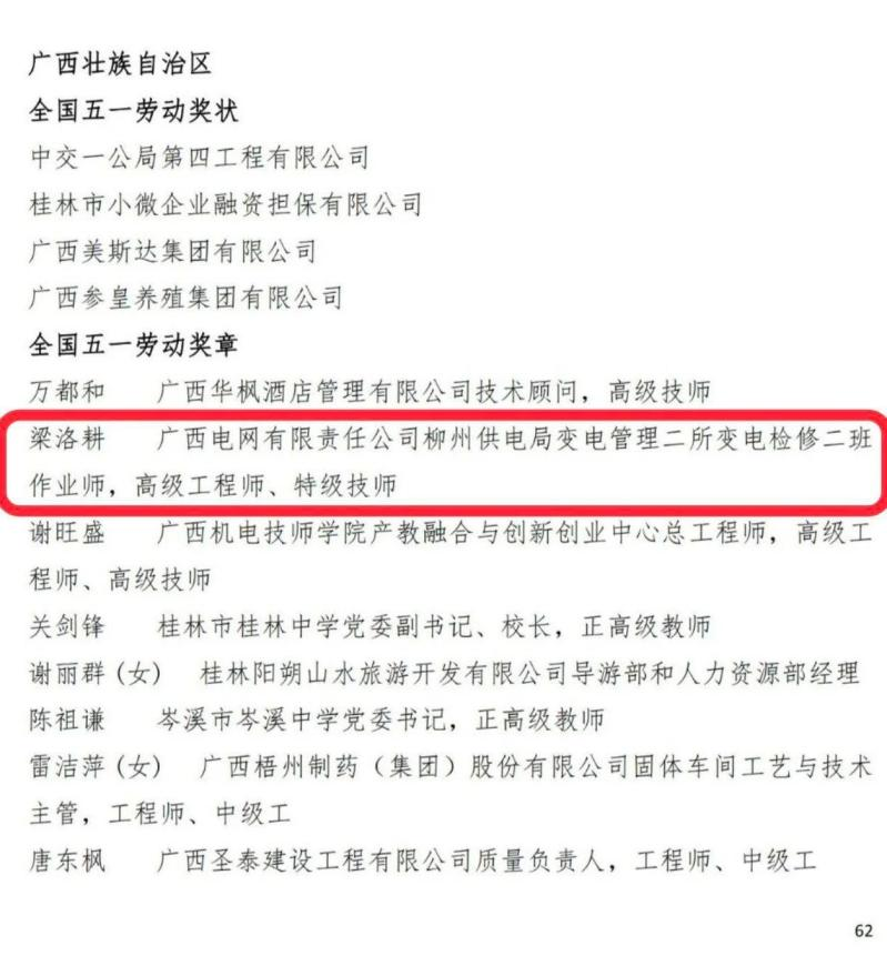 我院校友梁洛耕荣获2024年全国五一劳动奖章。