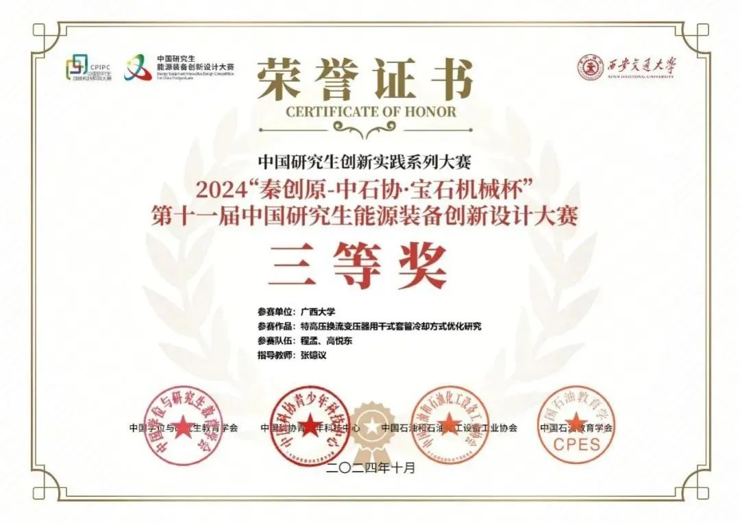我院研究生在“秦创原—中石协·宝石机械杯”第十一届中国研究生能源装备创新设计大赛获得三等奖。