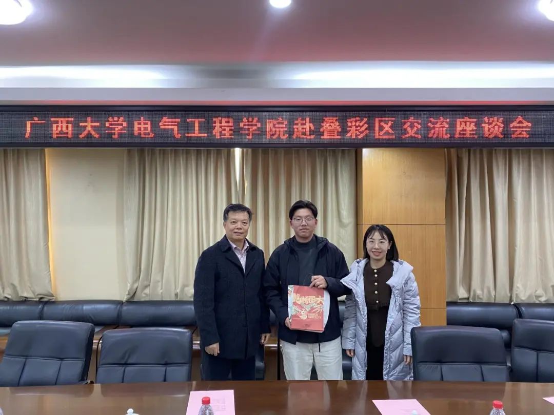 1月15日下午,梁志坚书记一行拜访了中共桂林市叠彩区委员会组织部,走访了我院2023届定向选调生校友徐大也。叠彩区委领导介绍了我校定向选调生在岗表现情况,同时对徐大也的工作表现给予了肯定。徐大也校友是我院2020级电子信息专业研究生,他分享了在基层工作的所见所闻和心得体会,对学院领导老师的关心表示感谢,同时也表达了为地方经济社会发展贡献力量的决心。