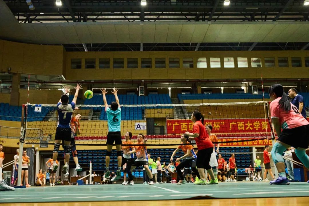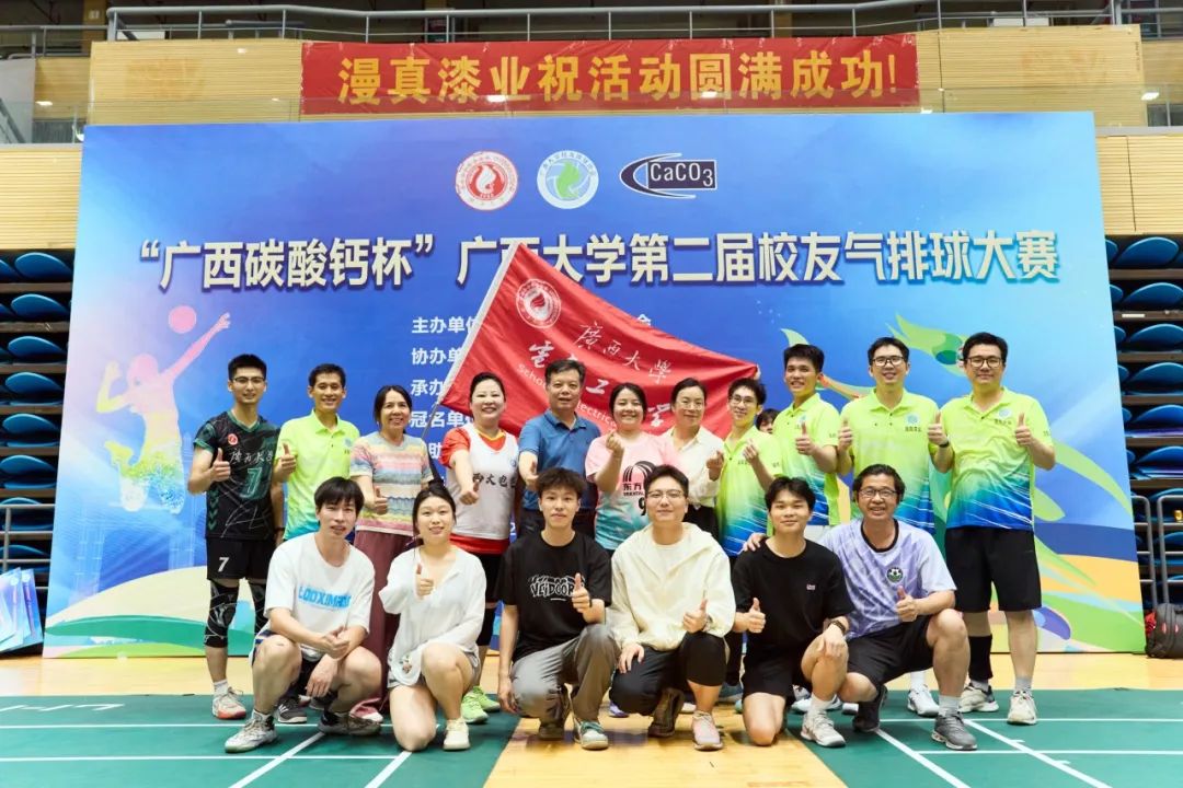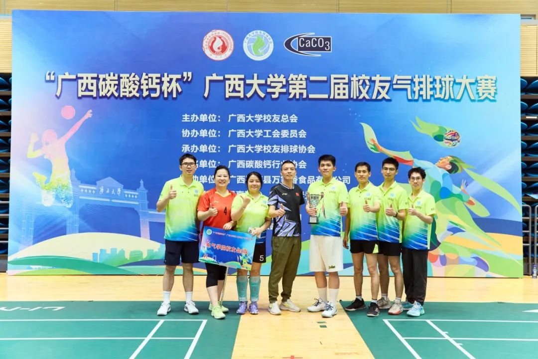 4月19日—4月20日,由太阳成集团122ccvip校友总会主办、校工会协办、校友排球协会承办的“广西碳酸钙杯”第二届校友气排球大赛在校体育馆火热开展。我院积极动员往届校友组成代表队参赛,凭借精湛的球技、默契的战术配合和永不言弃的竞技精神,在小组赛、淘汰赛中连克强敌,最终获得赛事亚军。