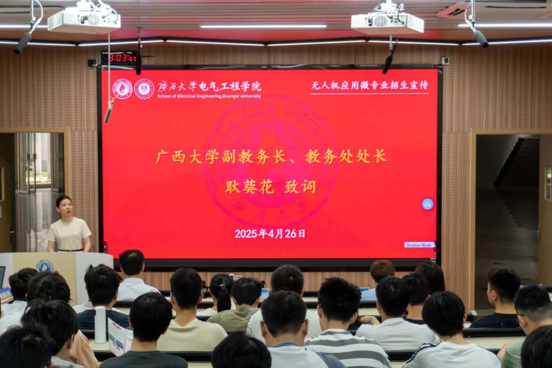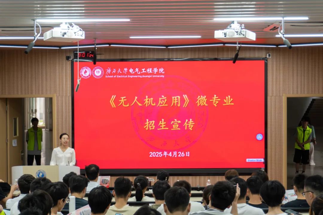 为贯彻落实教育部实施就业能力提升 “双千” 计划,提升我校学子在无人机领域的专业素养,我院与大疆创新科技公司联合开办《无人机应用》微专业,并面向全校招生。4月26日,《无人机应用》微专业招生宣传活动在教学楼10A-101举行。太阳成集团122ccvip副教务长、教务处处长耿葵花,我院党委书记梁志坚,教务处副处长谢健,机械工程学院副院长李俚,农学院副院长韦燕燕,我院副院长李畸勇,大疆行业广西平台商负责人江昊出席活动。活动由我院党委副书记李琼莹主持。 会议现场 活动现场,通过政策解读、专业介绍、技术分享及飞行展示等多个环节,全面展现了该专业紧扣国家低空经济发展战略,深度融合 “产教融合、校企协同” 育人模式的培养特色与实践优势。 李琼莹副书记主持活动 会议现场 耿葵花处长对我校“微专业”建设作了专题说明。她指出,微专业以行业核心能力为导向,结合学生个性化兴趣与产业发展趋势,为同学们提供灵活、多元的学习路径。该课程体系独立于现有主修培养方案,学生修完全部课程并通过考核后,可获学校颁发的微专业证书。 耿葵花处长致词 梁志坚书记从时代机遇、硬核课程、触摸未来、职业蓝图四个方面介绍了《无人机应用》微专业的价值和未来。他指出,该专业的设立,不仅是技术和教育的融合,更是对国家战略的响应,赋能青少年成长的重要探索。 梁志坚书记致词 此外,李畸勇副院长深入解读了该专业的人才培养目标与课程体系;大疆创新科技公司工程师们则为大家展示了无人机机型及其应用场景。 李畸勇副院长介绍专业 江昊工程师讲解 在户外飞行展示环节,工作人员进行无人机编队飞行、农业植保模拟等演示,展现了无人机精准操控与智能作业的技术魅力,直观呈现了微专业 “学用结合” 的培养特色,激发了在场学生对无人机应用的浓厚兴趣。 户外无人机讲解 户外飞行展示 据悉,《无人机应用》微专业由我院携手大疆创新科技公司联合开办,构建 “校企双导师” 培养模式,打造理论扎实、实践突出的复合型人才培养高地,培养更多 “懂技术、能实操、会创新” 的无人机应用人才,为低空经济发展注入新动能。 合照