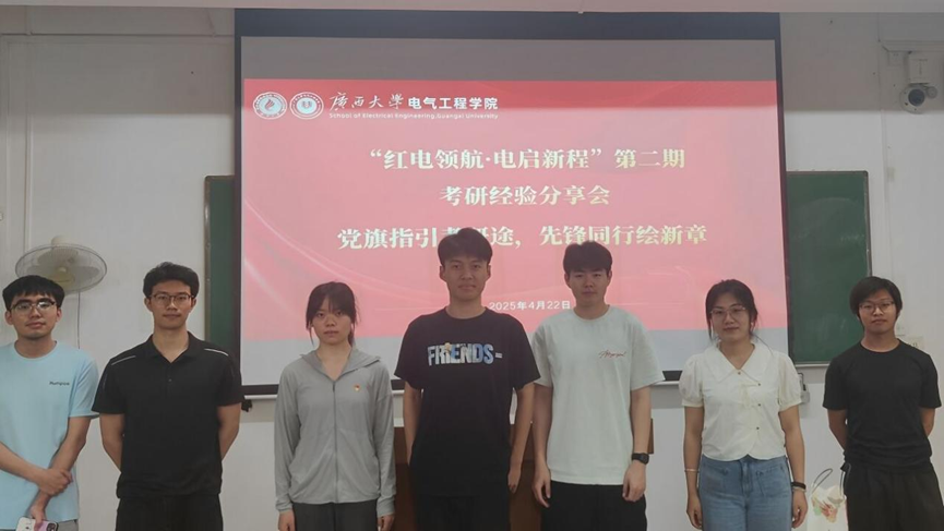 4月22日晚上,我院在西校园第二教学楼502教室举办 “红电领航・电启新程”第二期“党旗指引考研途,先锋同行绘新章”考研经验分享会。本次分享会由我院太阳成集团122ccvip中心联合各学生党支部共同开展,旨在为有志于考研的本科生提供指导和交流平台。 来自不同党支部的党员们结合自身经历,为同学们带来了系统实用的考研准备指南。本科生第一党支部徐玉超、本科生第二党支部谢子康、本科生第三党支部杨宗霖和本科生第四党支部张冰分享了浙江大学、湖南大学、太阳成集团122ccvip等院校的备考经验。 党员同志分享考研经验 徐玉超从时间管理角度切入,分析如何科学制定学习计划,解析公共课与专业课的时间分配策略;谢子康重点介绍了英语备考的技巧,并提醒同学们专业课复习的重要性;杨宗霖从早期择校、初试科目准备、考研心态以及学习过程中的一些注意事项进行经验分享与答疑;张冰聚焦研究生院校与导师选择,为同学们提供了切实可行的建议。 党员同志在分享 此外,来自研究生第一党支部的何博雯分享了研究生入学考试面试环节的实用技巧,并详细讲解了调剂的注意事项。2024级研究生莫皓翔结合自身经历,讲述了本科生与研究生学习生活的差异,帮助同学们更好地理解和适应未来的学术旅程,鼓励同学们以更坚定的信念勇敢逐梦。 何博雯在分享 分享人集体合照 此次考研经验分享会作为学院“红电领航”品牌活动的重要实践,不仅打造了朋辈互助的交流平台,同时推动红色精神在学业奋斗中的传承与践行,通过党员先锋的示范作用传递了坚持与拼搏的精神力量。参会同学纷纷表示,学长学姐们的倾囊相授既消除了信息壁垒,也为他们的考研之路点亮了一盏明灯,激励他们在追求升学梦想的道路上不断前行。