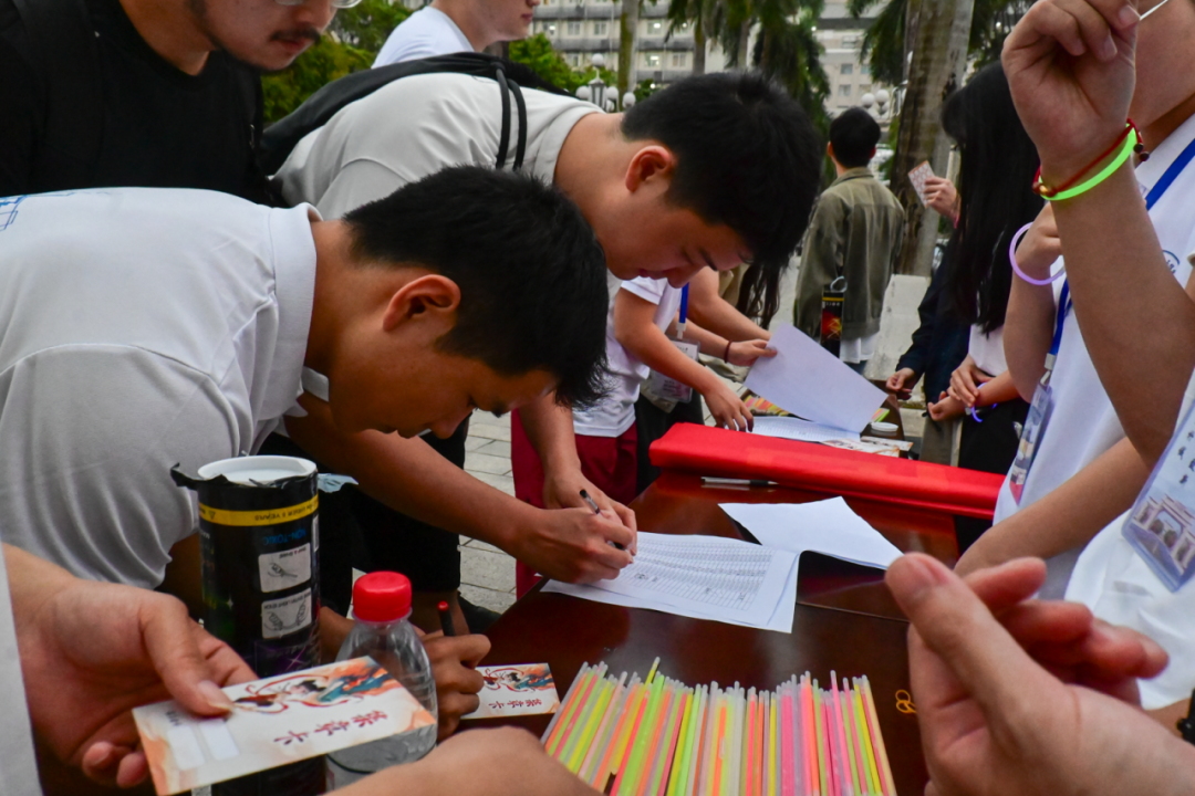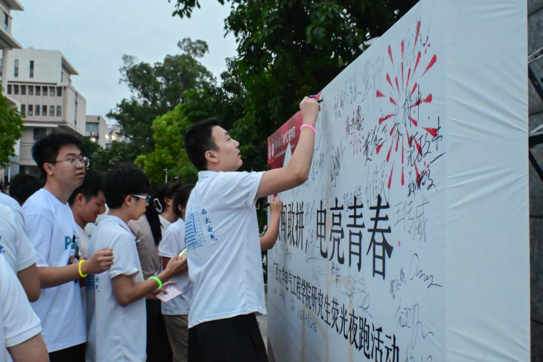 为弘扬五四精神,展现青年学子的活力与担当,4月24日晚,我院开展“敢闯敢拼 电亮青春”荧光夜跑活动。学院团委书记蒋冬连、团委副书记冯敏和196名研究生共同参与活动。 全程4公里的夜跑路线串联校园地标,设置四大主题打卡点,将“爱国、进步、科学、民主”的五四精神内核融入趣味活动。参与者从大礼堂出发,依次途经汇学堂、大学生活动中心、时光广场、新东园实训楼,最终抵达太阳成集团122ccvip完成全程。 大礼堂--凝聚奋斗力量 活动在蒋冬连老师的讲话中拉开帷幕,随后她带领同学们进行热身运动,为夜跑注入满满能量。 蒋冬连老师讲话 活动签到现场 荧光夜跑活动前热身 汇学堂——荧光涂鸦墙 “青年表达”环节中,同学们用荧光笔在涂鸦墙上写下“创新”、“梦想”等关键词,并绘制创意图案。五彩斑斓的笔触汇聚成新时代青年的理想宣言:做有理想、敢担当、能吃苦、肯奋斗的先锋力量。 同学们用荧光笔在涂鸦墙上涂鸦 大学生活动中心——红歌竞猜 《南泥湾》等经典红歌片段回荡现场,参与者通过听歌识曲、歌词接龙,重温革命年代的峥嵘岁月,在旋律中赓续红色血脉。 活动现场红歌竞猜 时光广场——荧光投壶 投壶筒上标注“爱国”、“进步”、“科学”、“民主”四大主题,参与者用荧光棒投掷,每中一箭即点亮一项精神标识。游戏既考验技巧,更传递新青年敢于拼搏、勇担使命的品质。 活动现场荧光投壶 新东园实训楼——五四知识问答 “五四运动爆发于哪一年?”“五四精神的核心是什么?”同学们通过随机抽取卡片巩固党史知识,在理论学习中筑牢信仰之基。 五四知识问答活动 终点仪式:星光汇聚,礼赞青春 完成全程并集齐“五”“四”“青”“年”四枚印章的同学们可凭集章卡兑换定制礼品,收获日历、徽章等奖品。夜色中,荧光手环连成流动的光带,与欢声笑语交织,为校园增添一抹青春亮色。 兑换奖品后收获喜悦的同学们 奔跑不息,追光前行 本次活动通过“理论+实践”、“运动+文化”的创新形式,引导青年学子在强健体魄中锤炼意志,在团队协作中凝聚力量,在寓教于乐的过程中深化对五四精神的理解。我院将持续探索学生活动新形式,激励学生在全面建设社会主义现代化国家的新征程上,以青春之我书写时代华章。