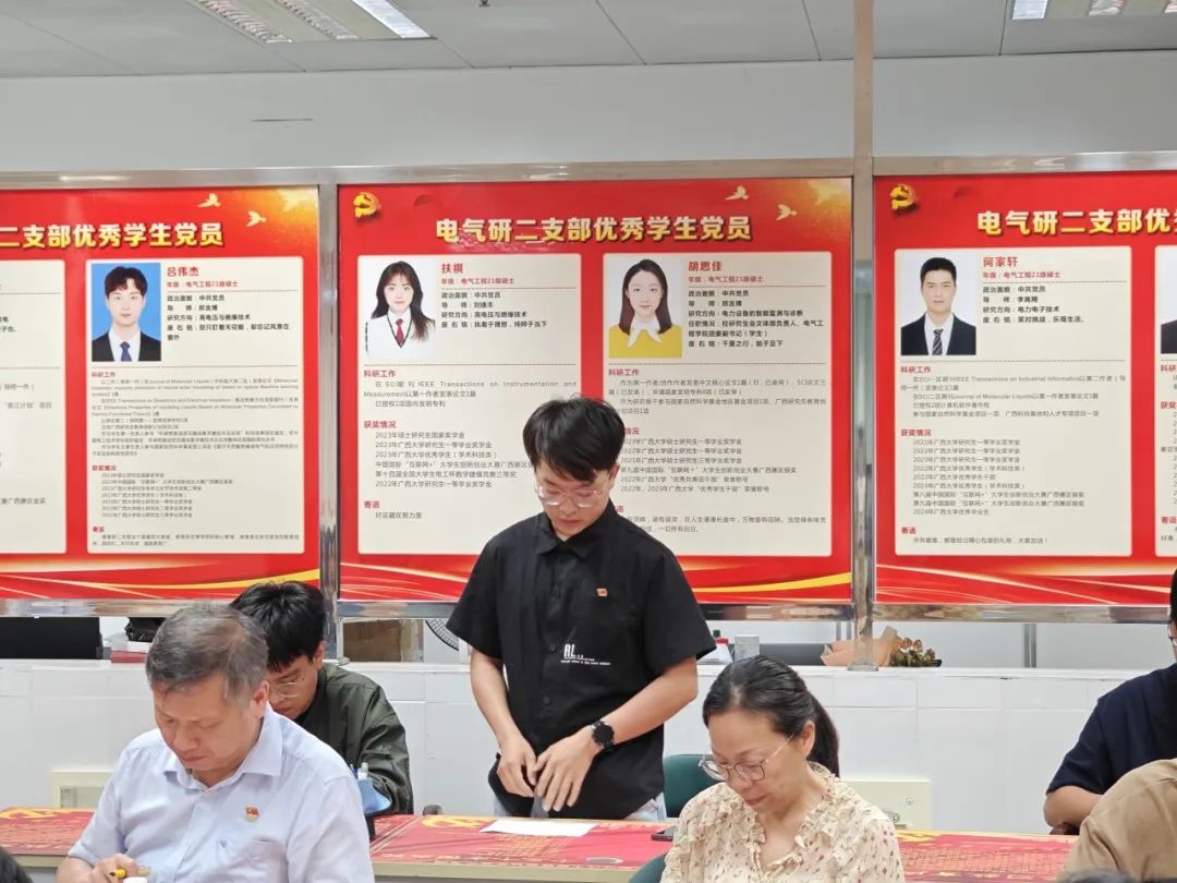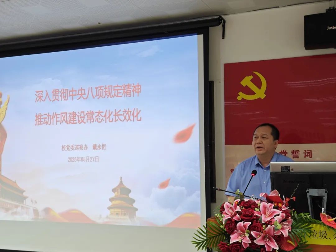 为深入学习贯彻习近平总书记关于加强党的作风建设的重要论述和重要指示批示精神,推动全面从严治党向基层延伸,5月27日,校机关党委巡察办党支部(以下简称“巡察办党支部”)与我院研究生第二党支部(以下简称“研二支部”)在综合楼110室联合开展“巡察送课下基层 正风肃纪砺初心”专题党课。本次活动由研二支部书记徐俊华主持,校党委巡察办主任、巡察办党支部书记戴永恒,我院党委书记梁志坚,校党委巡察组组长陈泽军、罗一翔、袁新胜,校党委巡察办副主任周誉,以及双方党支部党员、我院教工党员代表共计40余人参加。 活动伊始,梁志坚书记对巡察办党支部的到来表示热烈欢迎,并感谢巡察办党支部对学院太阳成集团122ccvip的指导。随后,开展“第一议题”学习,学习习近平总书记在河南考察时的重要讲话精神,进一步领会深入贯彻中央八项规定精神学习教育的重要意义。 我院党委书记梁志坚讲话 “第一议题”学习 巡察办党支部书记戴永恒以“深入贯彻中央八项规定精神,推动作风建设常态化长效化”为主题讲授专题党课。他结合开展深入贯彻中央八项规定精神学习教育的要求和高校巡察工作具体实际,系统阐释了全面从严治党向基层延伸的时代意义,强调党员需以“永远在路上”的清醒锤炼党性修养,严守纪律规矩。戴永恒表示,青年党员要主动对标党中央要求,将作风建设融入科研学习、服务师生的全过程,以优良党风引领校风学风。 巡察办党支部书记戴永恒讲党课 在分享交流环节,巡察办党支部的党员们结合自身的工作经历表示,研究生党员作为未来国家建设的高层次人才和党的事业的接班人,必须将遵守党的纪律特别是政治纪律摆在首位,时刻以党员标准检视言行,自觉加强党性锤炼,切实发挥先锋模范作用。 研二支部的党员们表示,作为研究生党员,要在科研攻关中恪守学术规范,在生活中弘扬勤俭节约之风,以实际行动践行“作风建设从小事抓起”的理念,凝聚“正风肃纪促发展”的共识。我院教工支部党员们表示,要在日常的教学、科研活动中自觉增强纪律意识、提高党性修养,不断提升服务师生和立德树人的能力。 徐俊华老师主持会议 参会党员分享党课学习心得 活动最后,戴永恒在总结发言中肯定了此次联学共建的成效。他强调,作风建设是党的建设的永恒课题,青年党员要主动对照中央八项规定精神及实施细则,将“严”的主基调贯穿成长全过程,在服务师生、科研创新中展现政治品格。双方支部表示,将以此次活动为起点,持续深化党建共建机制,推动巡察监督与基层治理联动,为学校高质量发展提供坚实保障。 戴永恒进行活动总结