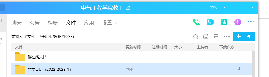 (1)电子版提交。命名格式:教学日历+任课教师+课程名(与教务系统一致的全称)+学期(2022-2023-1)。上传到学院教工群文件夹:教学日历2022-2023-1,操作方式:进教工QQ群界面—文件—教学日历(2022-2023-1)文件夹—上传