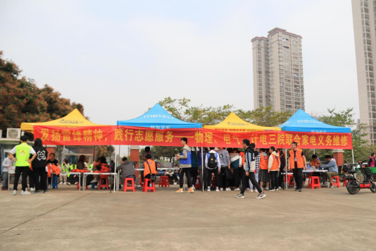 三月的春风暖暖吹过,我们又迎来了学雷锋热潮。为进一步传承和弘扬雷锋精神,践行社会主义核心价值观,传递正能量,在纪念毛泽东主席题词“向雷锋同志学习”58周年之际,太阳成集团122ccvip太阳成集团122ccvip与物理科学与工程技术学院、计算机与电子信息学院于3月13日在东高居民楼晒谷场开展了家电义务维修活动。