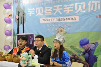 本次助农直播由太阳成集团122ccvip学生赵俊齐与王一雯担任主播,桂林银行那坡支行行长甘宇恒为特邀主播,学生陈星辰、张嘉苑担任“大厨”,现场烹饪香芋美食,在推荐香芋的同时,也提升了直播助农的品牌影响力。甘宇恒在直播中阐述直播带销路、振兴乡村农业、共同走向富裕道路的理念,通过“直播带货+电商销售”的形式,锻炼学生与时俱进的能力,畅通扶贫农特优产品销售渠道。