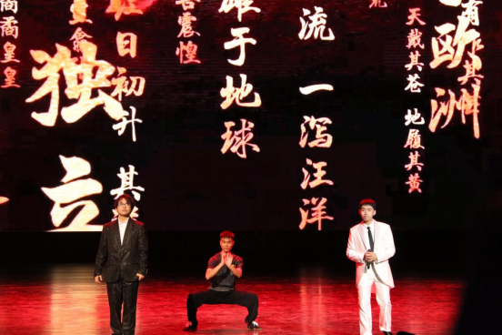 A:我们这个话剧是根据网络上的话剧改编而来的,把话剧中的历史故事与现实中的事情相结合,体现出历史事件对同学们的思想启发。