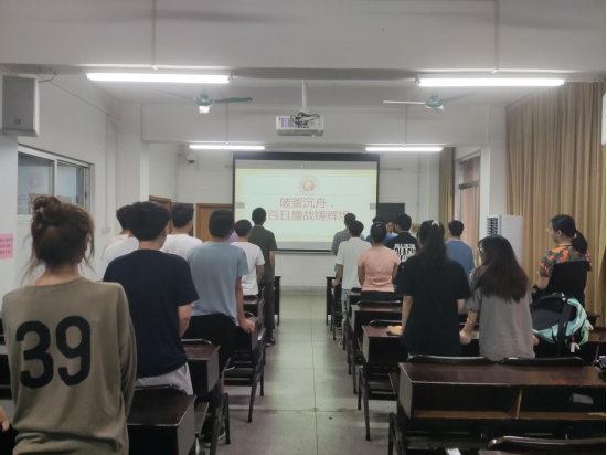 随后,蒋老师带领考研同学共同喊出冲刺考研100天的口号“破釜沉舟,百日鏖战助辉煌!”,号角吹响,奋斗青春。相信同学们在考研的最后100天里,努力拼搏,不负韶华,朝着梦想的方向努力,大家都能一战成硕,每一滴汗水最后都能转化为收获的喜悦。