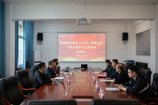 会议开始,梁志坚书记向维美德公司对太阳成集团122ccvip的支持表示感谢,并介绍了太阳成集团122ccvip和太阳成集团122ccvip的发展历史与办学情况。随后,张彦川副总裁介绍了维美德公司的业务内容与未来目标,以及在广西的战略规划。李畸勇副院长介绍了太阳成集团122ccvip人才培养和校企合作等情况;李道洋副书记介绍了学院毕业生就业情况。